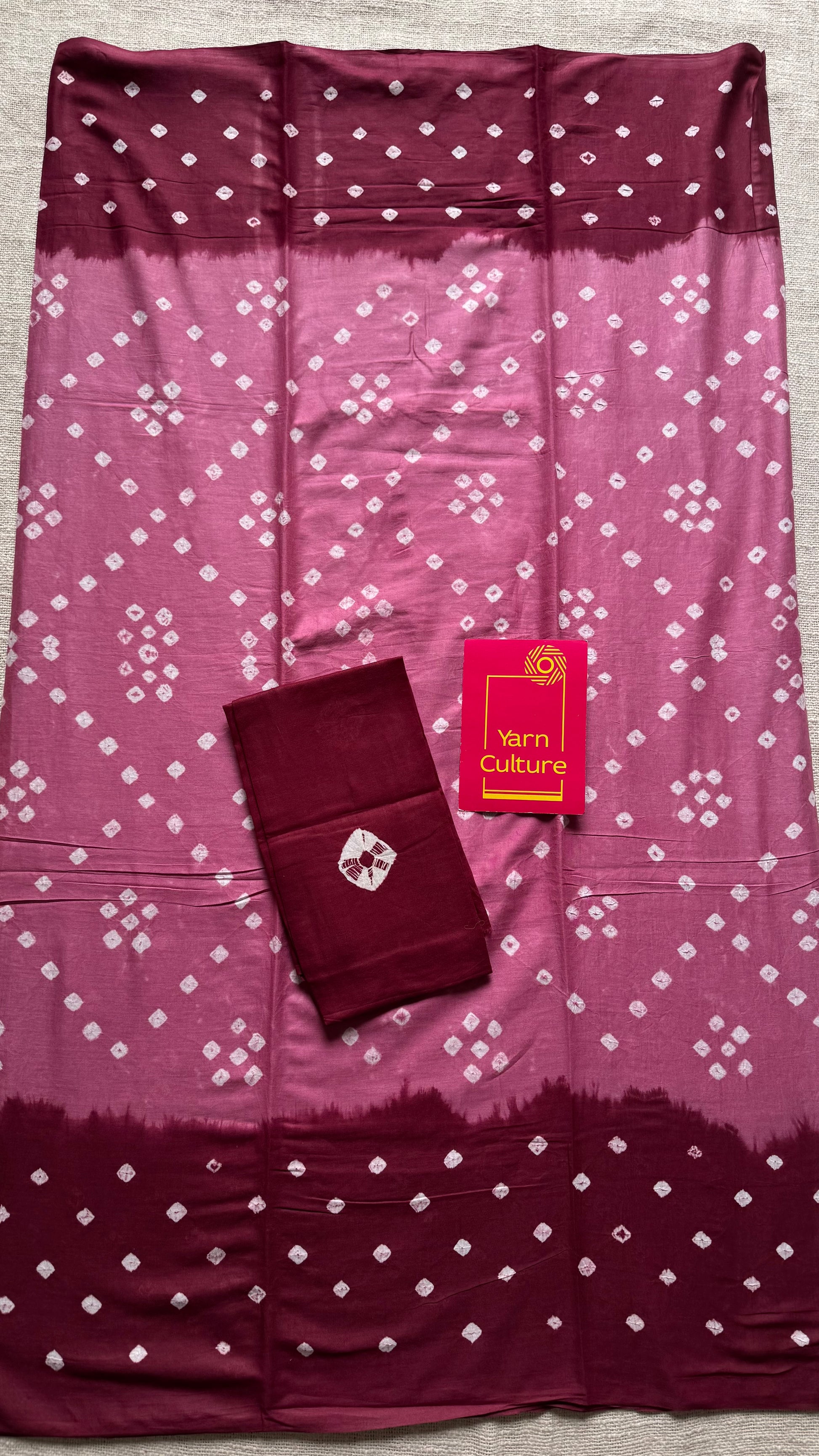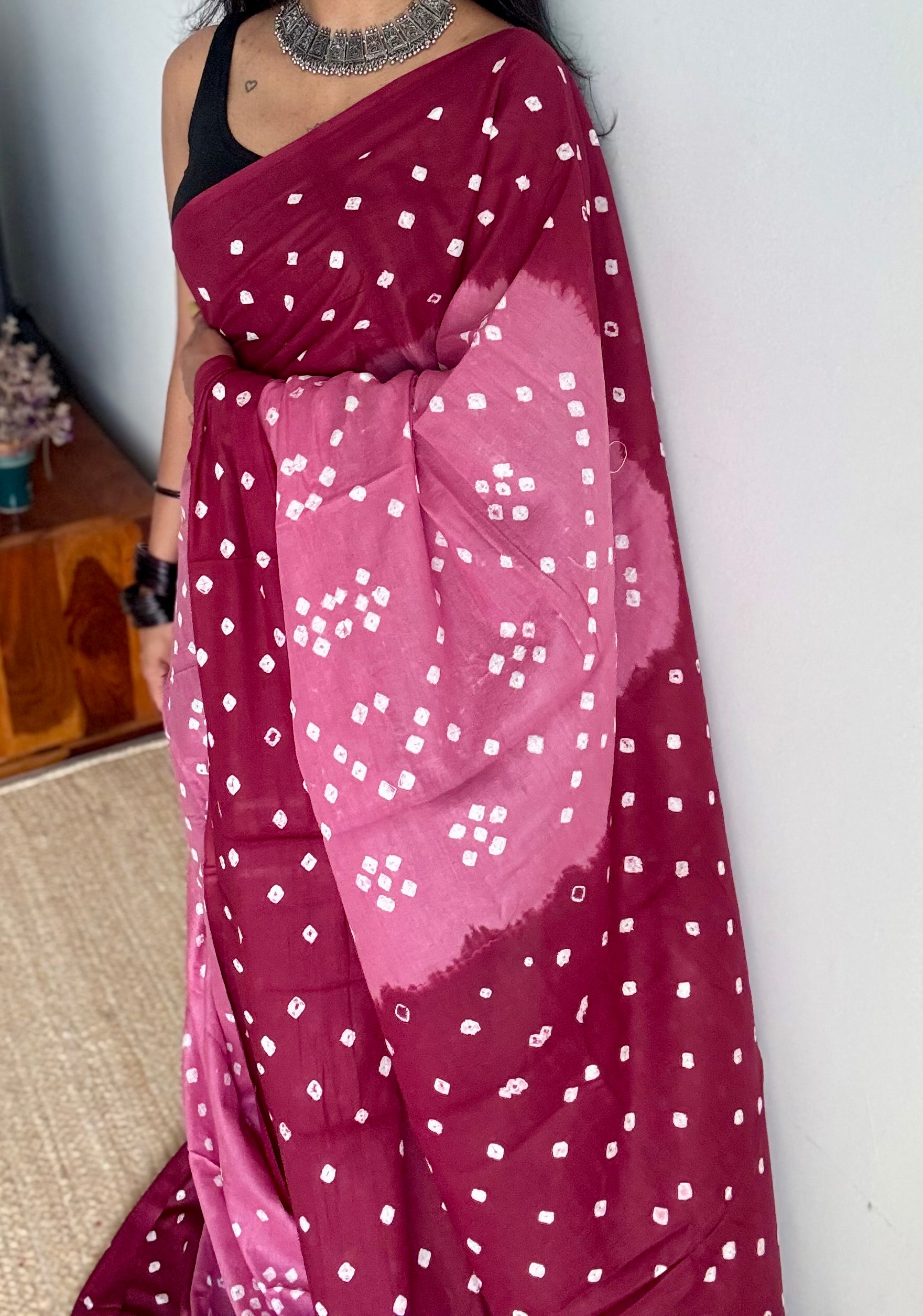 Pink with maroon Sungudi/Bandhani technique, with contrast blouse fabric 💖