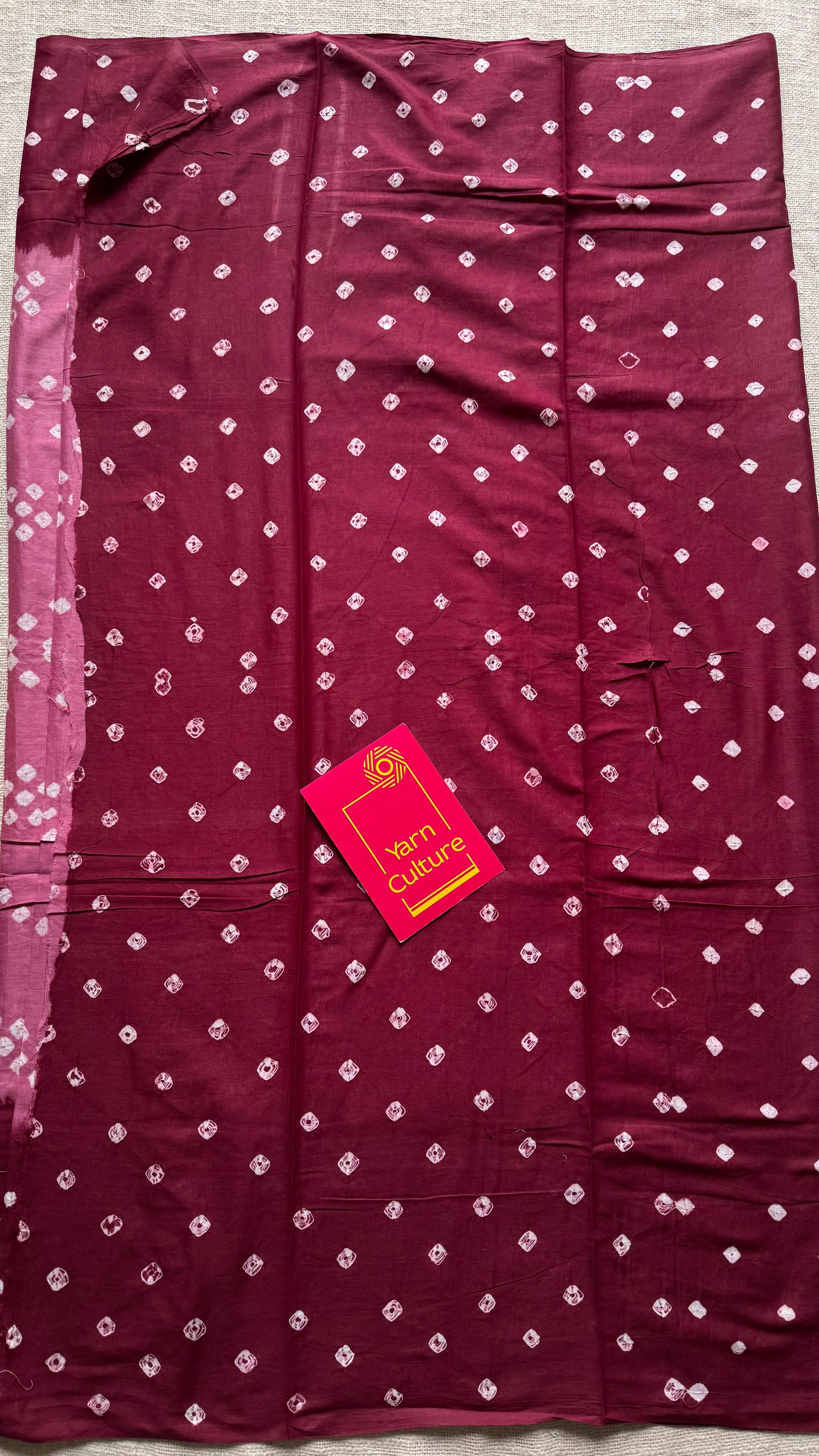 Pink with maroon Sungudi/Bandhani, soft cotton - YCCOTNSEMS79