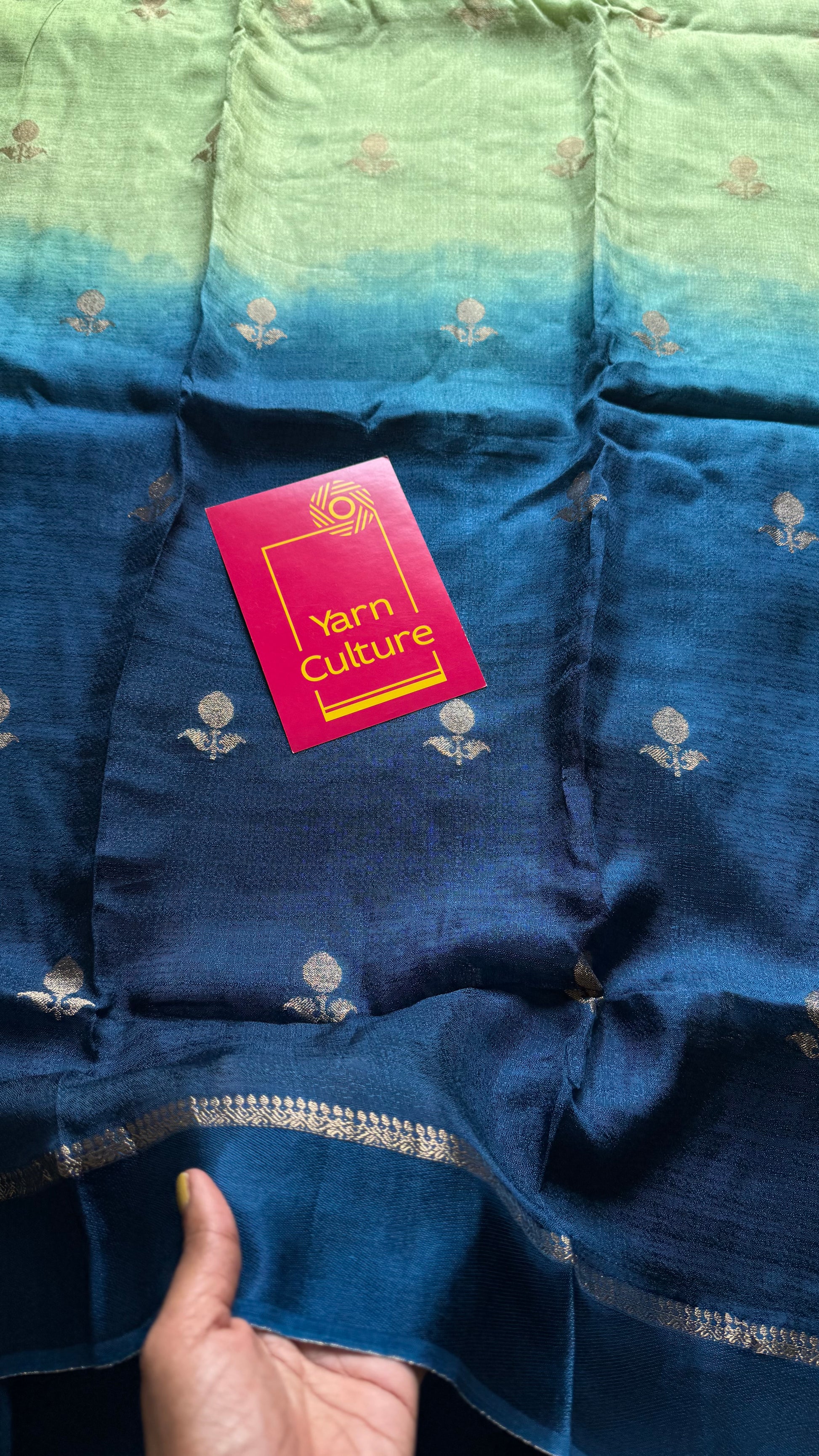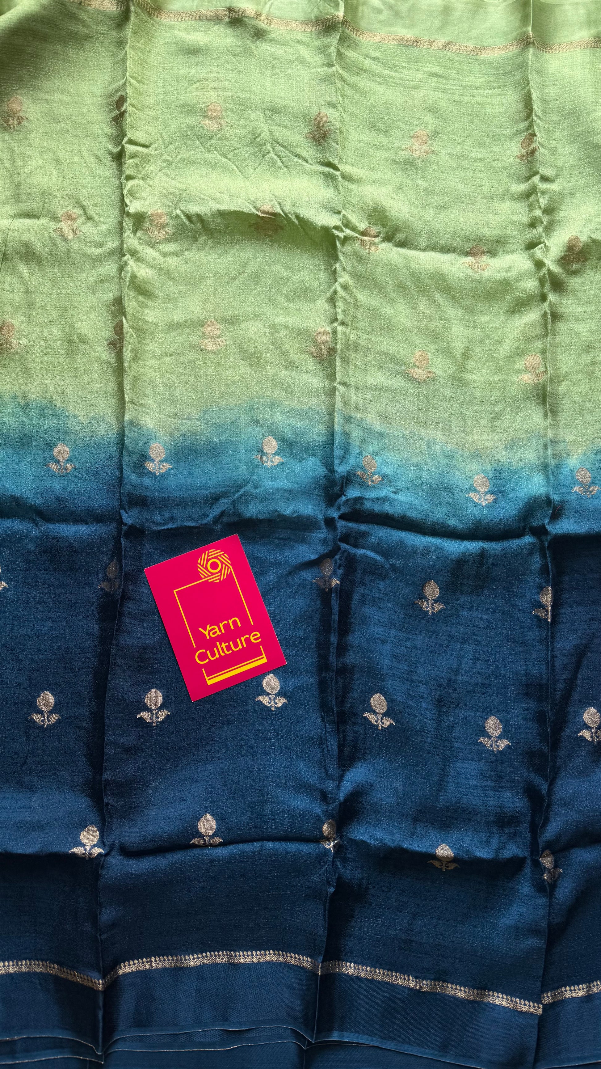 Pista green peacock blue dual tone in viscose soft silk with satin border, jacquard zari motifs - YCDOSFE195