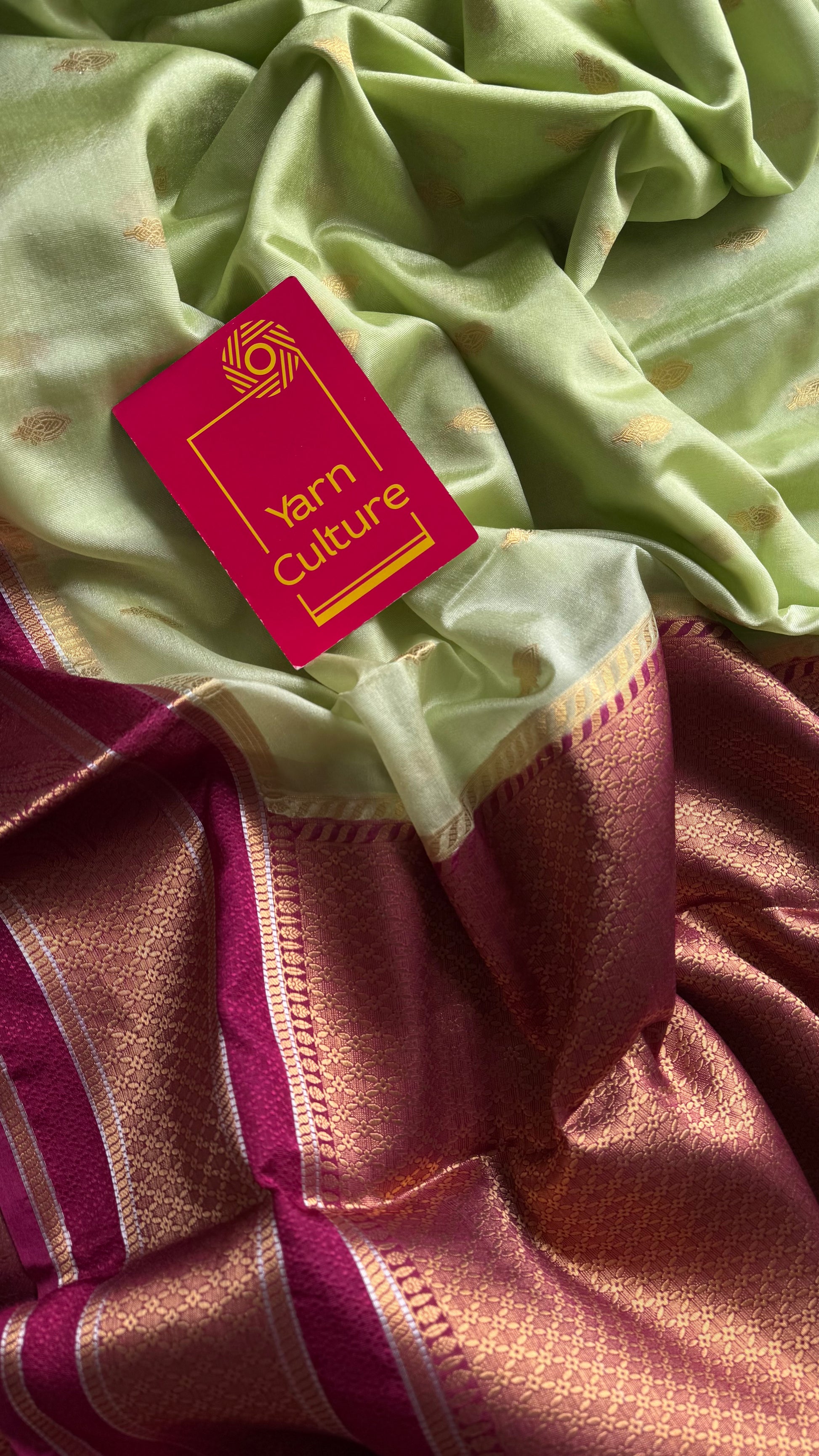 Pista green with maroon border, Banarasi semi-silk - YCDESE05