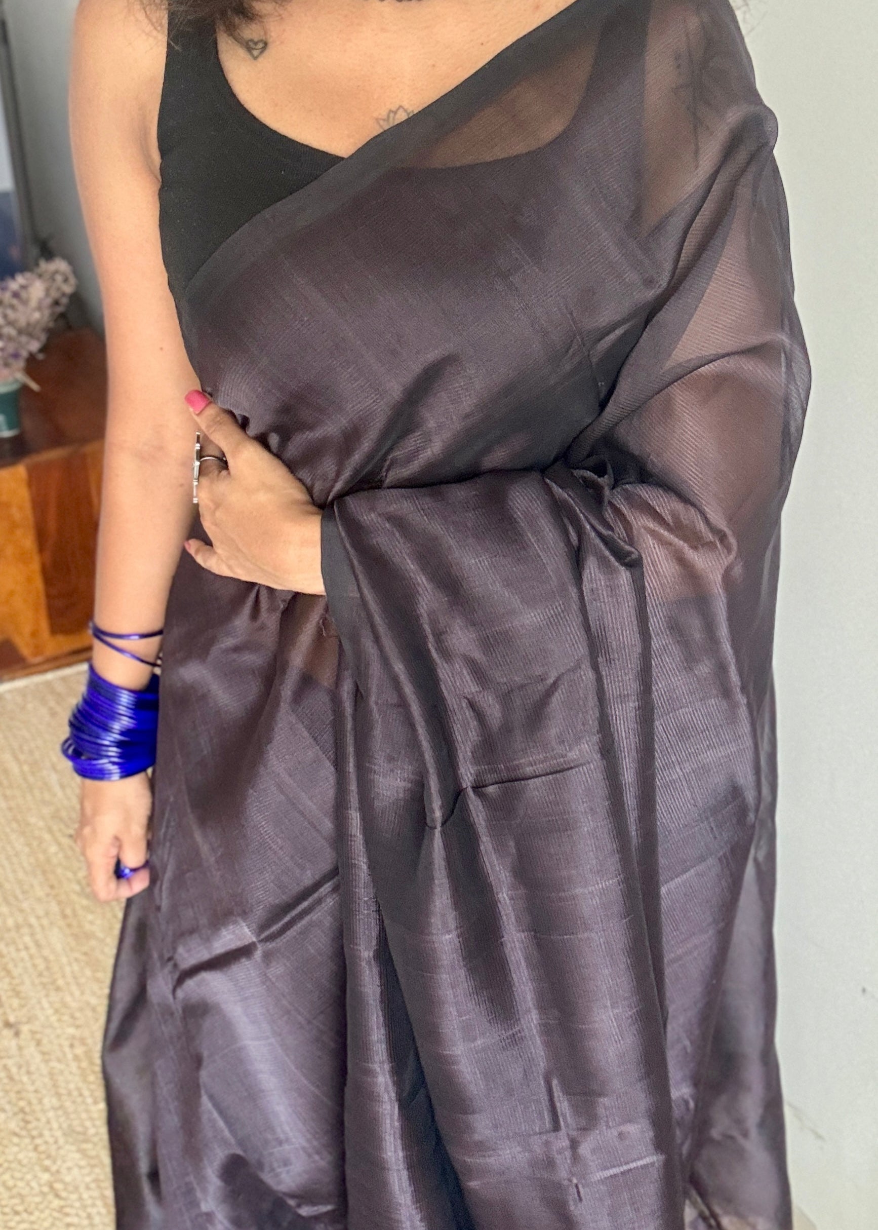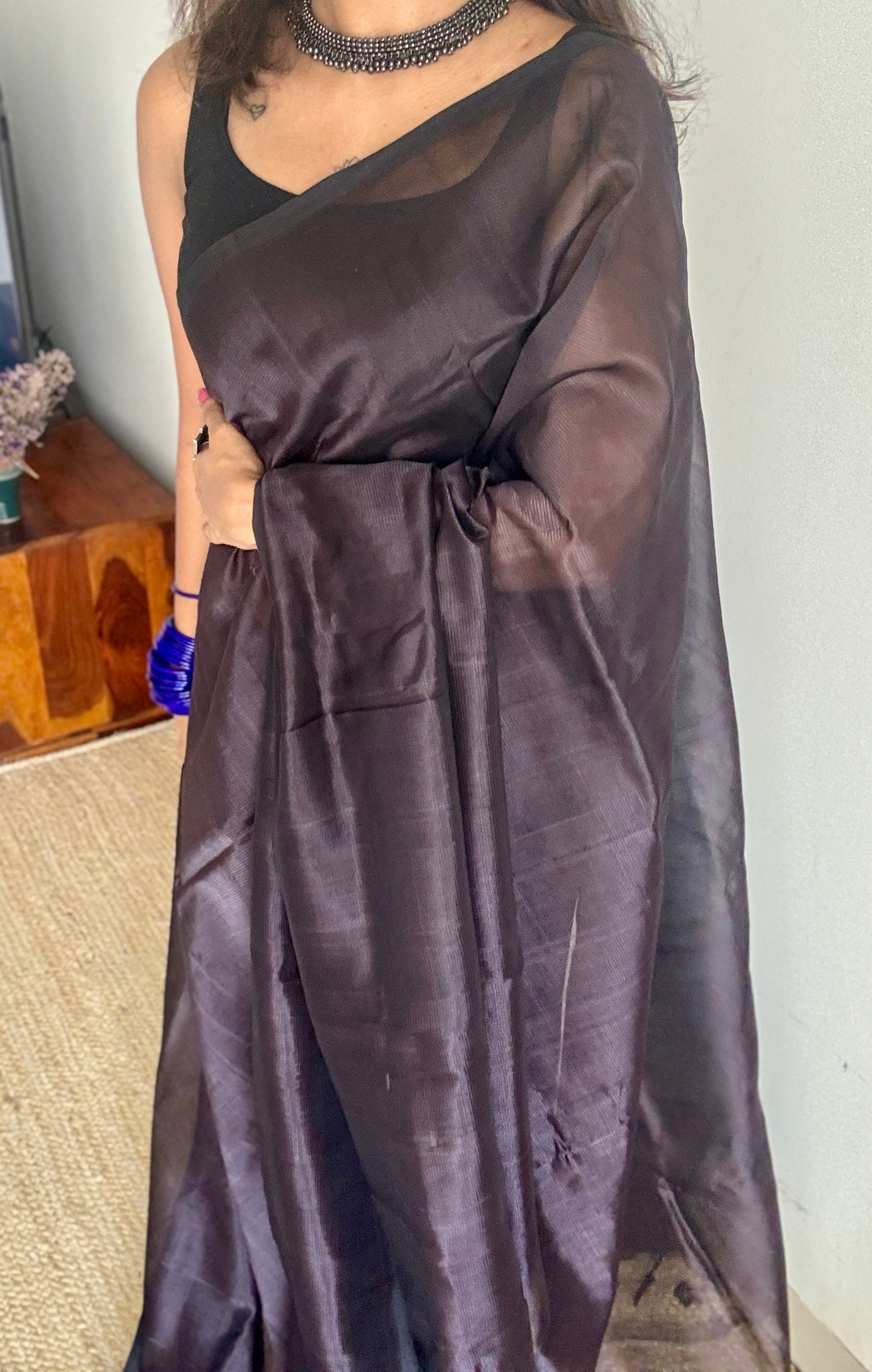 Ironing: Use a low to medium heat setting while ironing. If needed, place a cotton cloth over the saree before ironing to avoid direct heat exposure.
