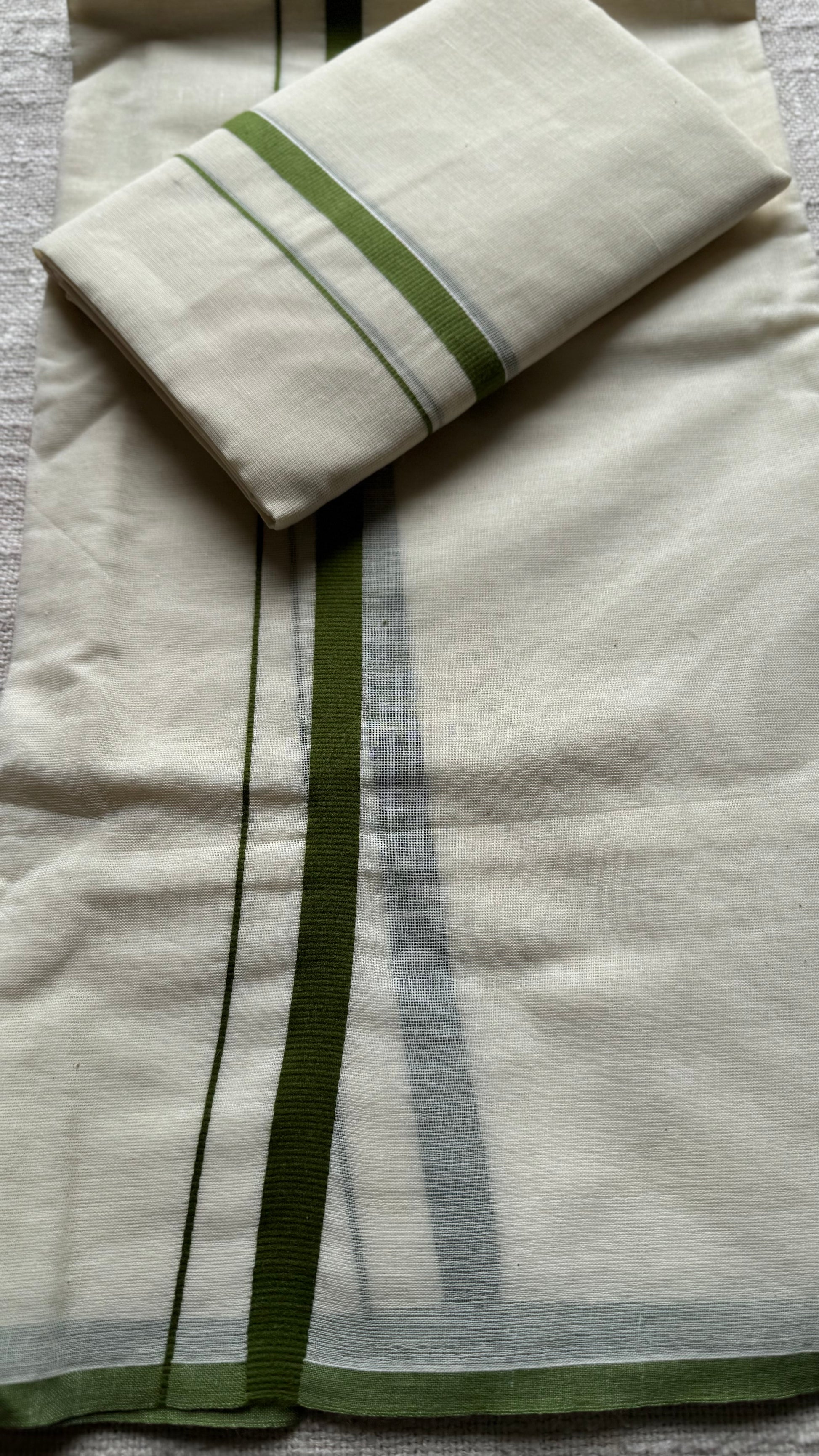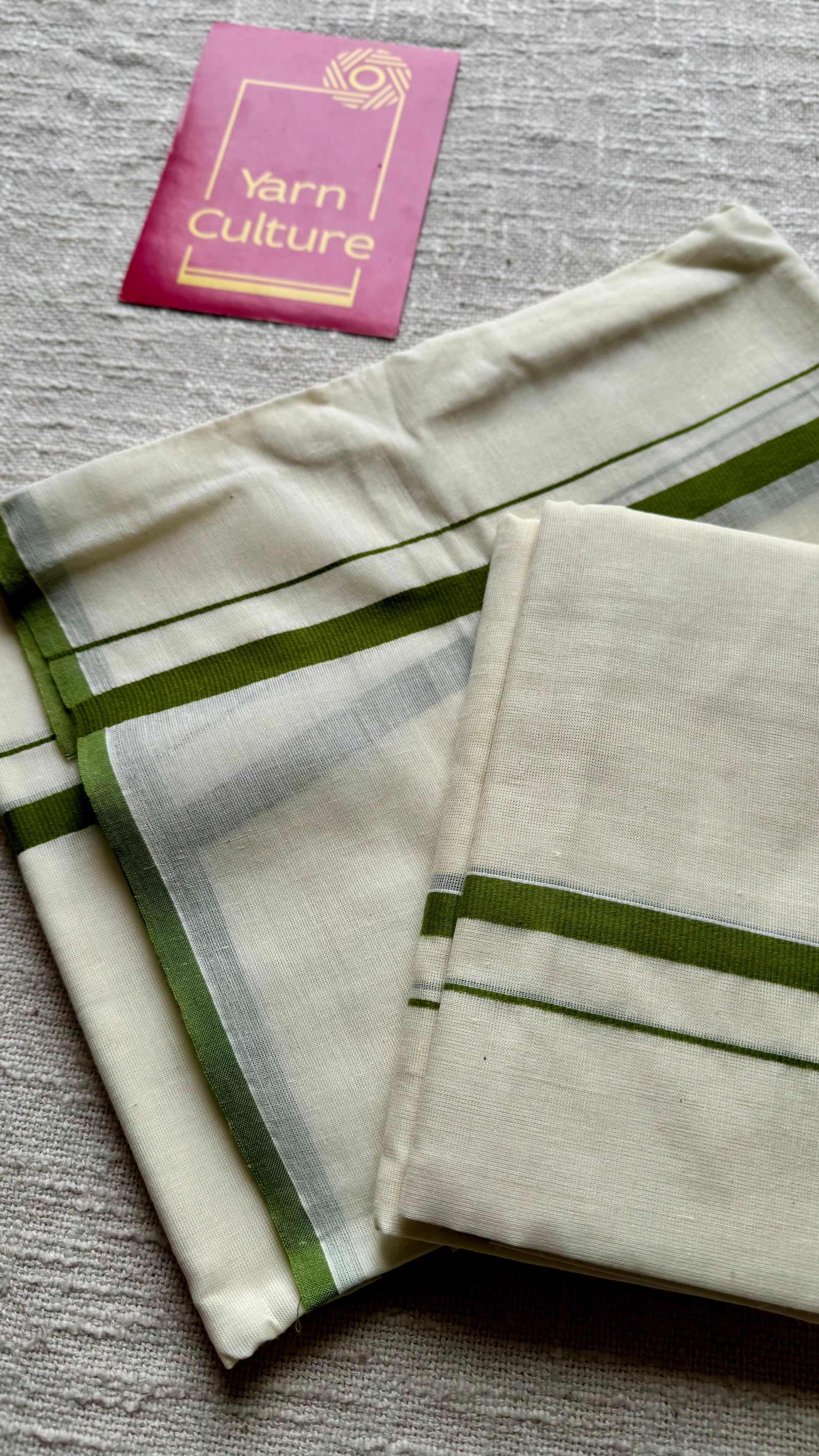 Material: Kerala Cotton/Additional info: Without blouse, Length of mund/bottom - 2m, length of neriyathu/upper part - 2.8m/ Width: 44”