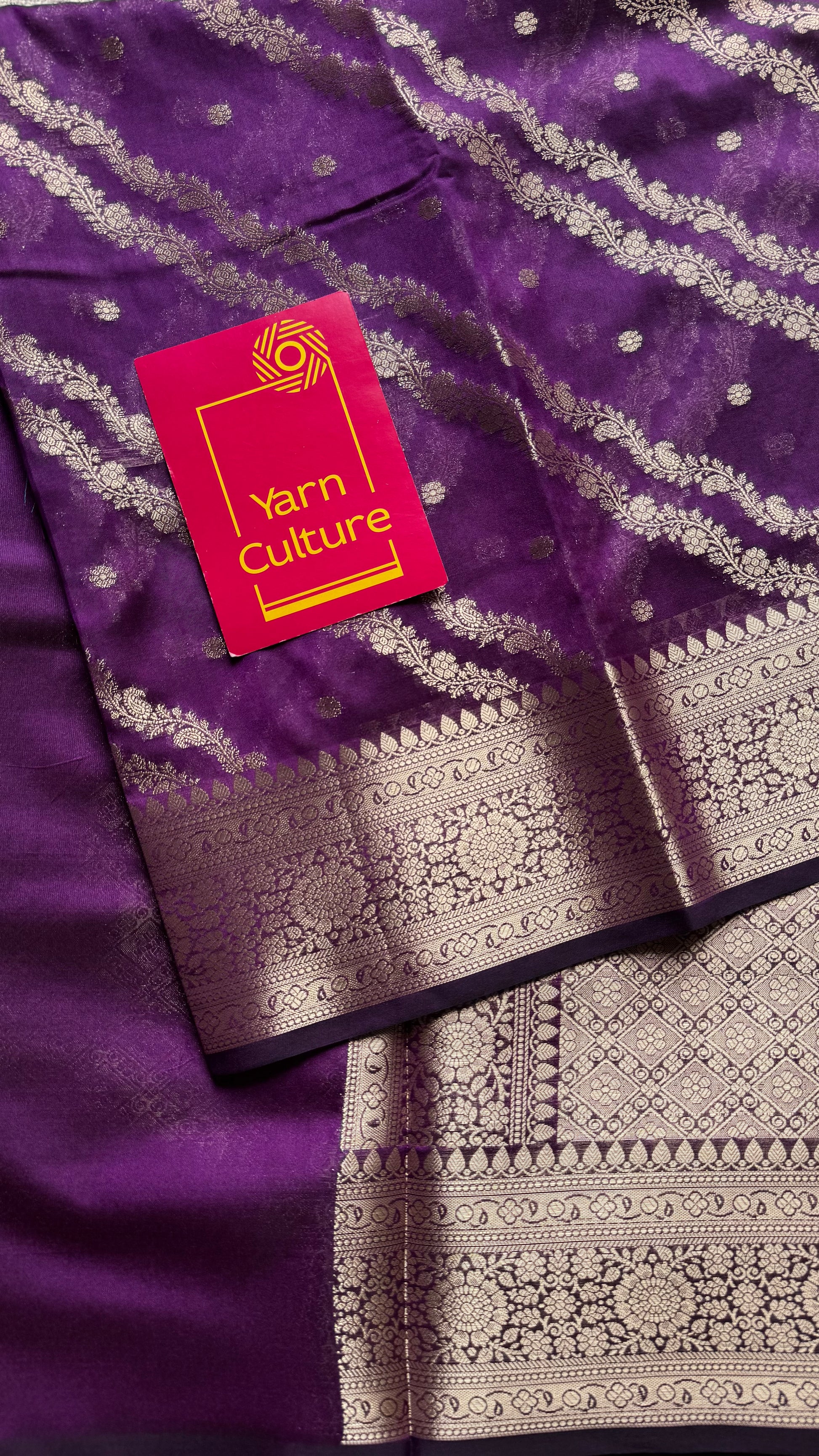 Purple floral zari, Banarasi semi-georgette - YCDESE15