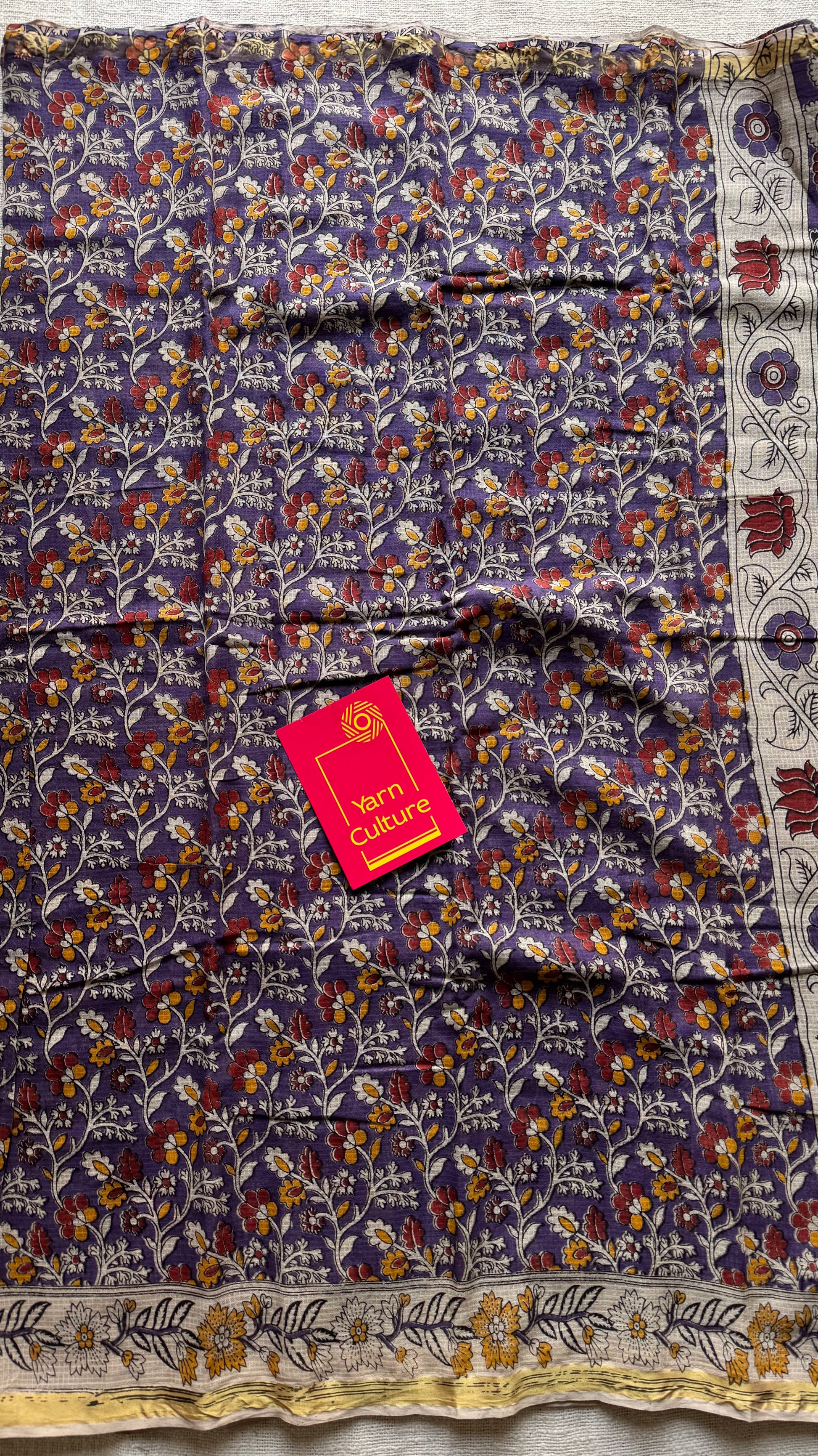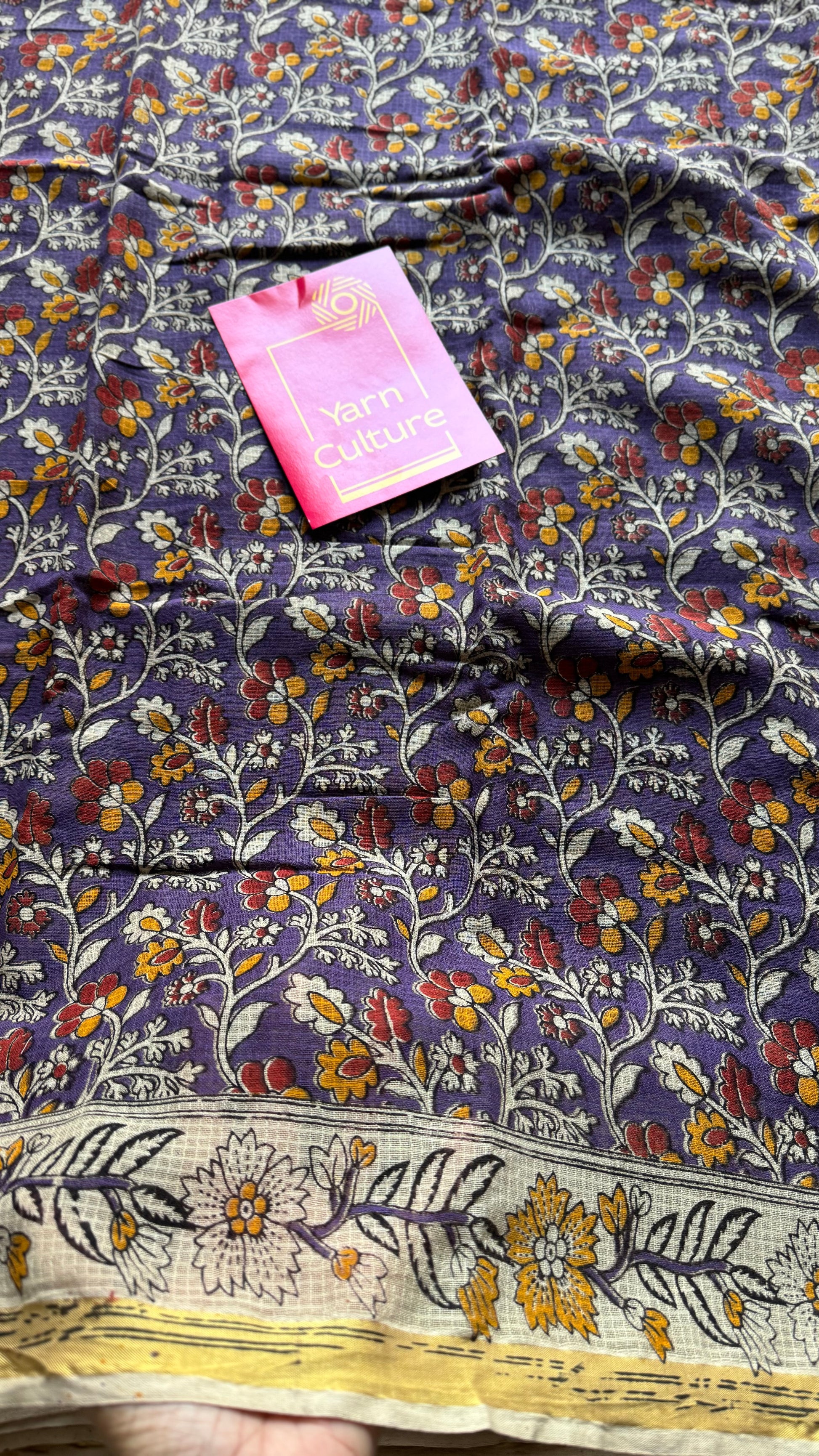 Purple cream red kalamkari saree in kota, with zari border - YCWOTDKKFE18