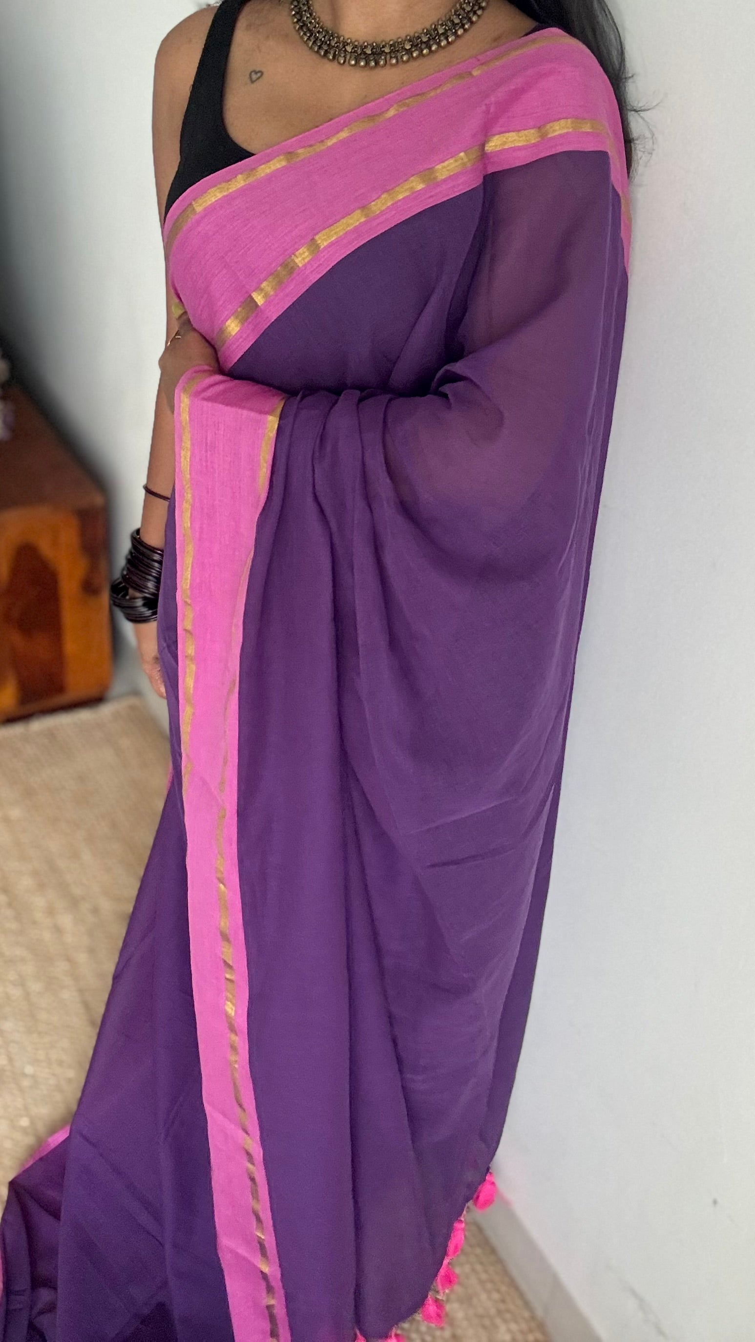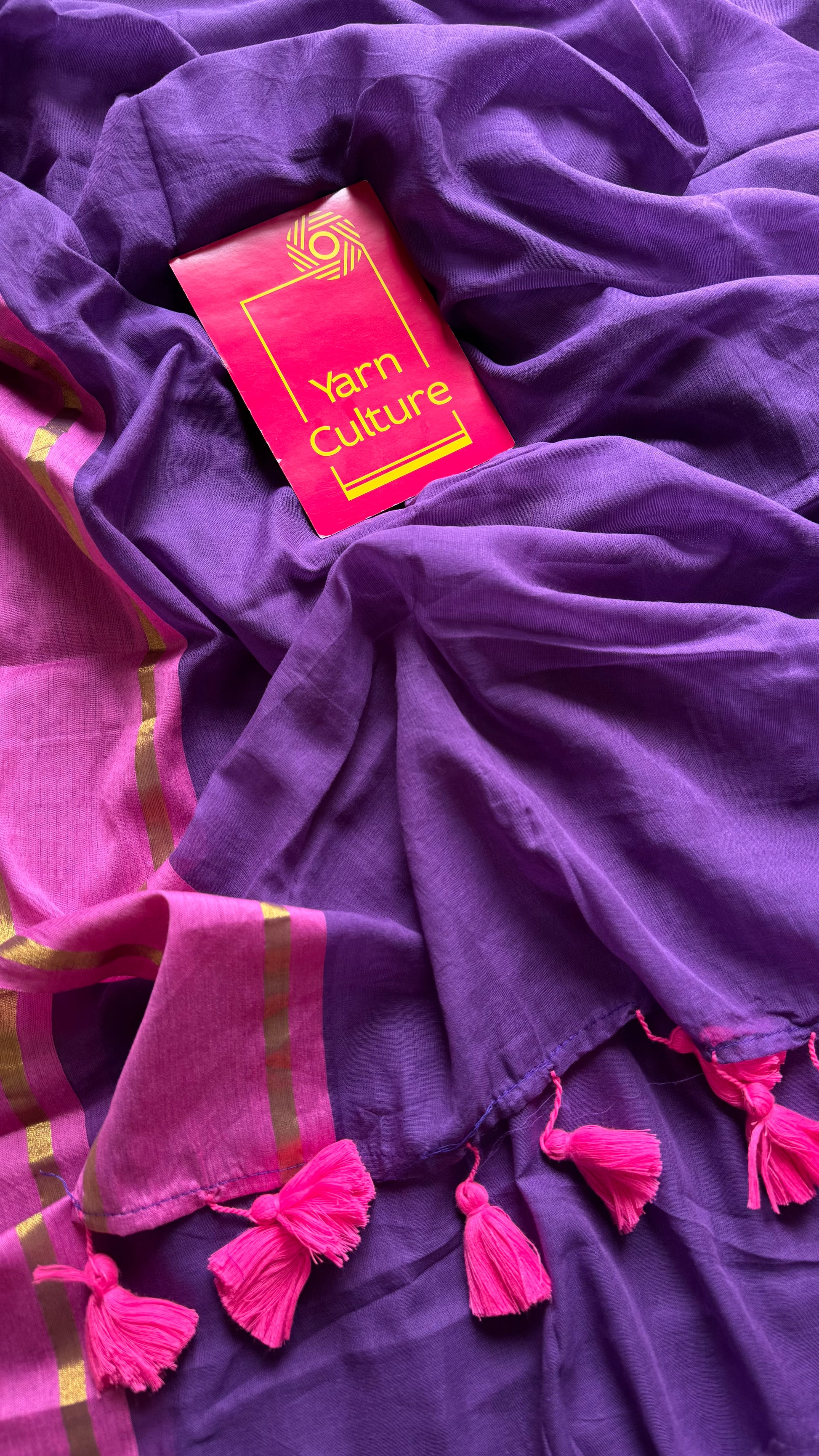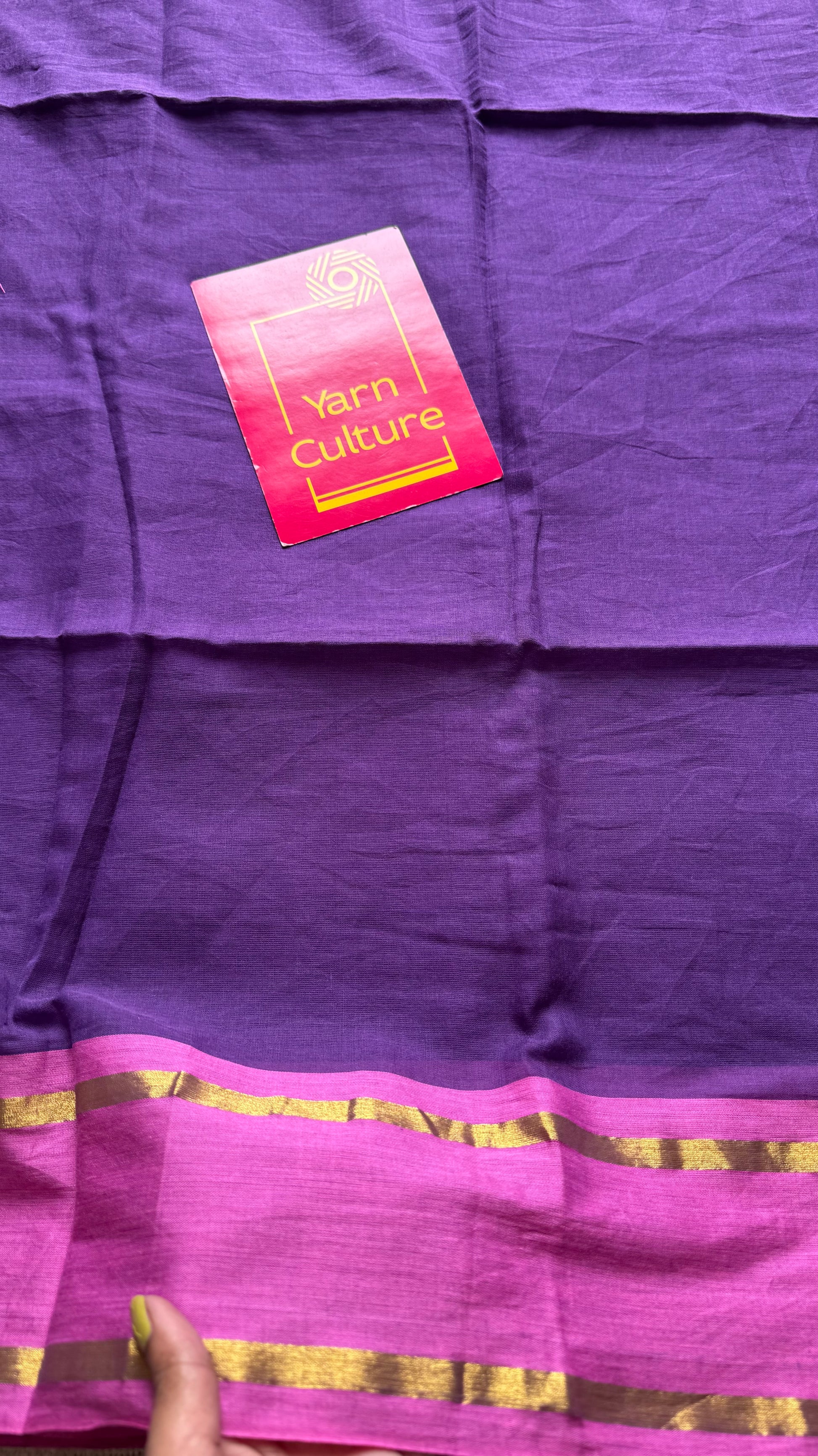 Purple mul with pink contrast border, gold zari - YCBCMCLSE22