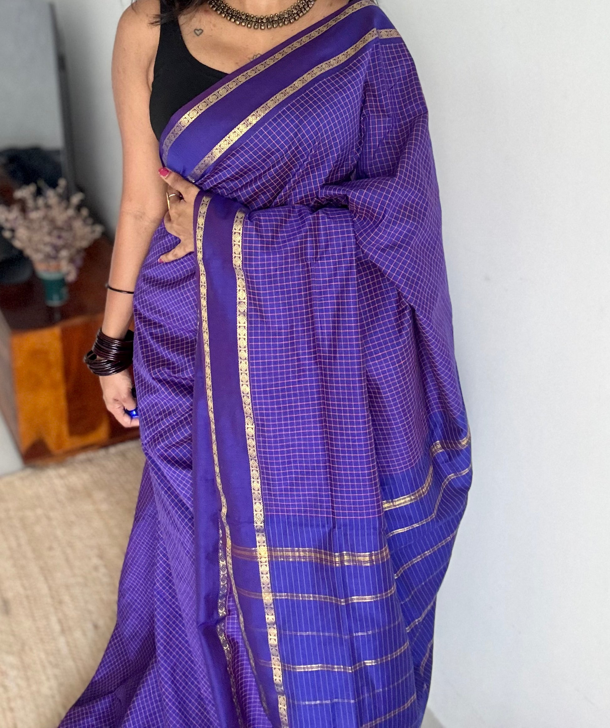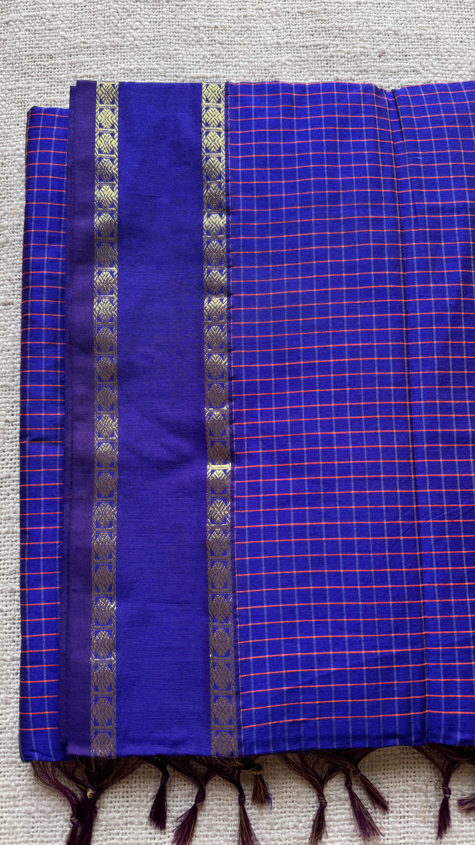 Double tone blue, arani checks, cotton silk - YCCOTNOCAR11