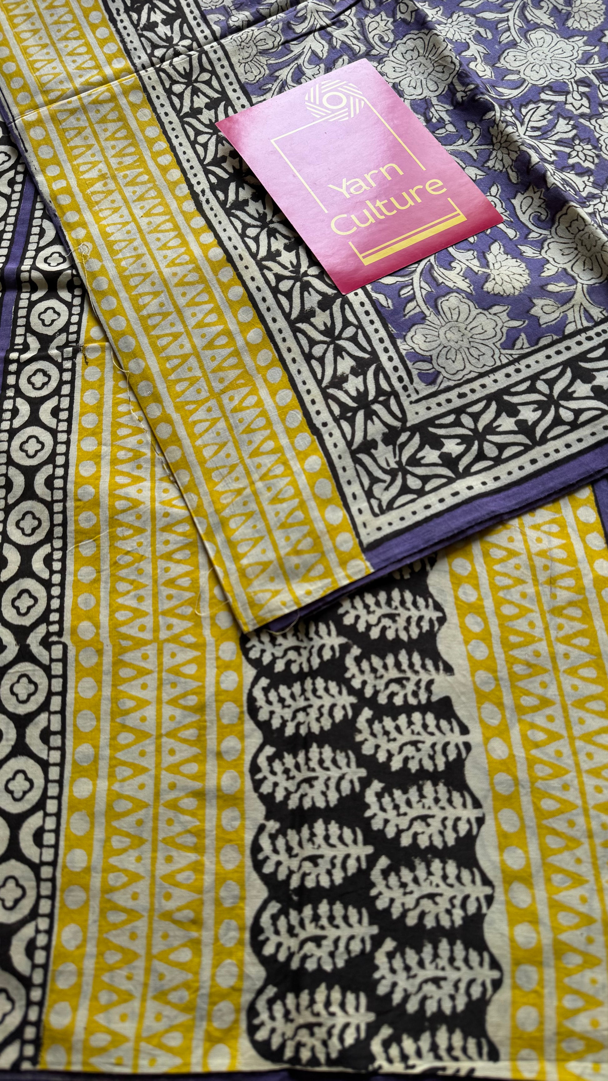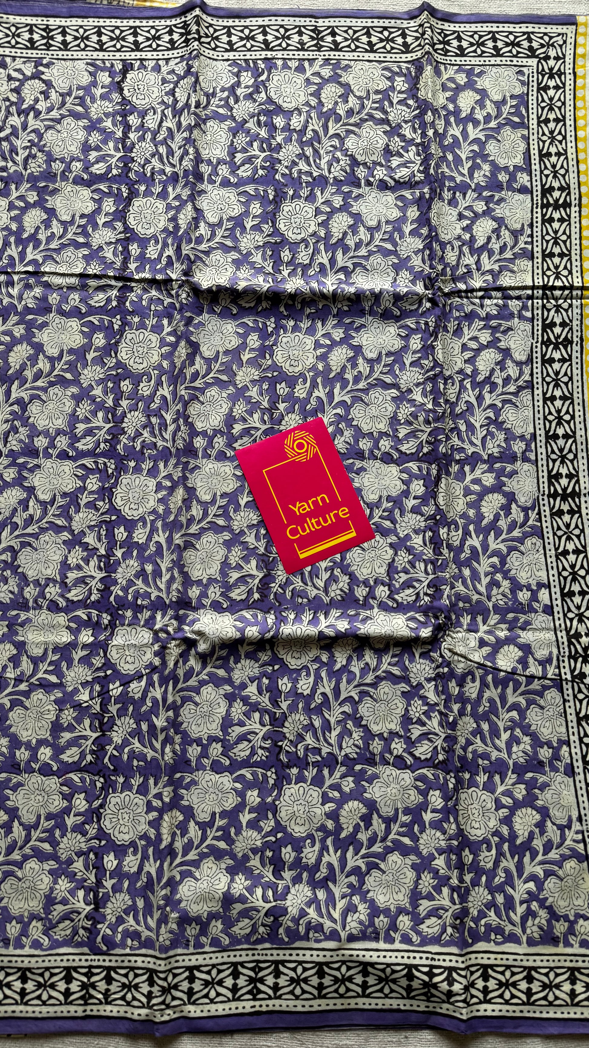 Purple with off white floral motifs, block printed soft cotton saree - YCTORCMA20