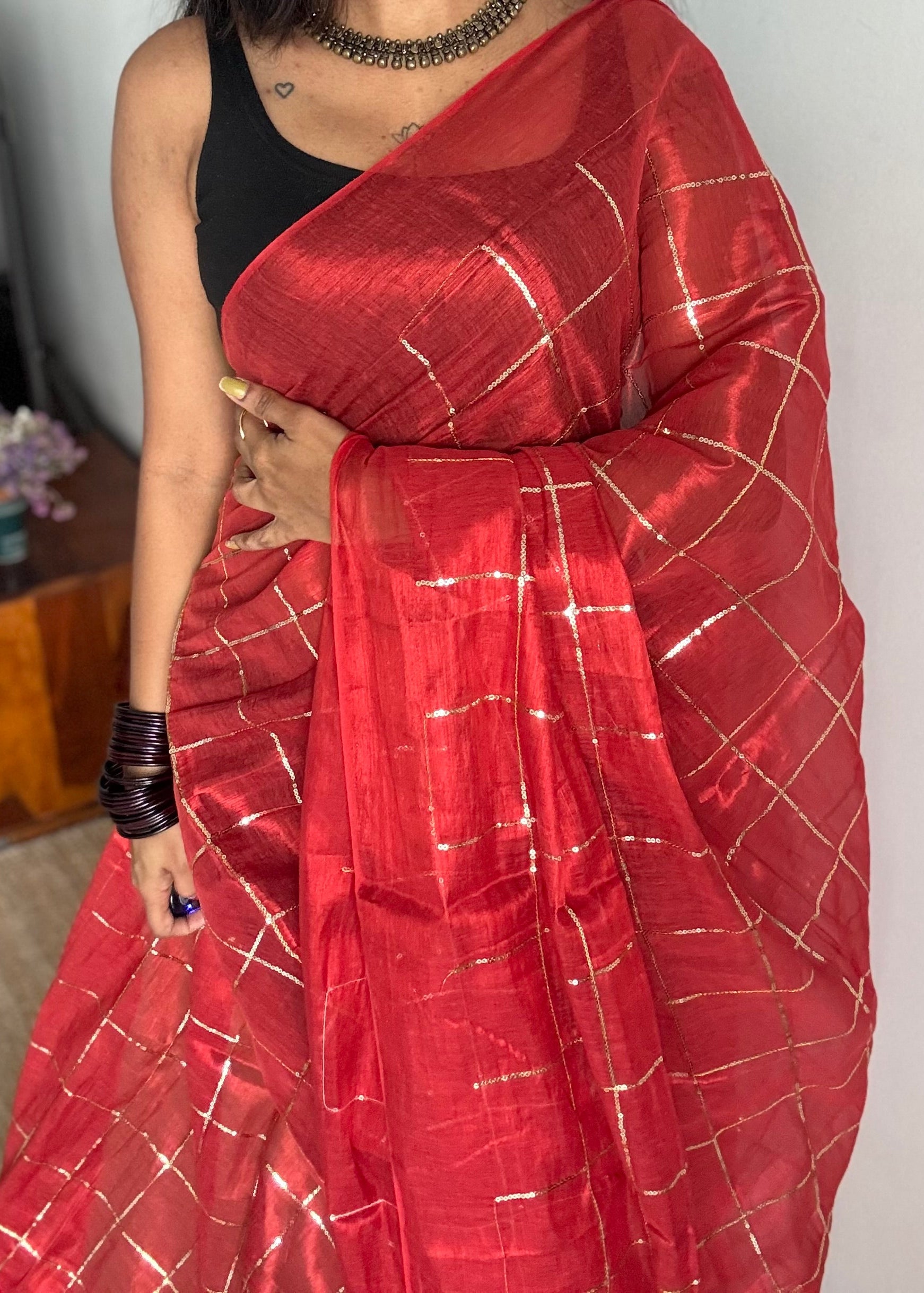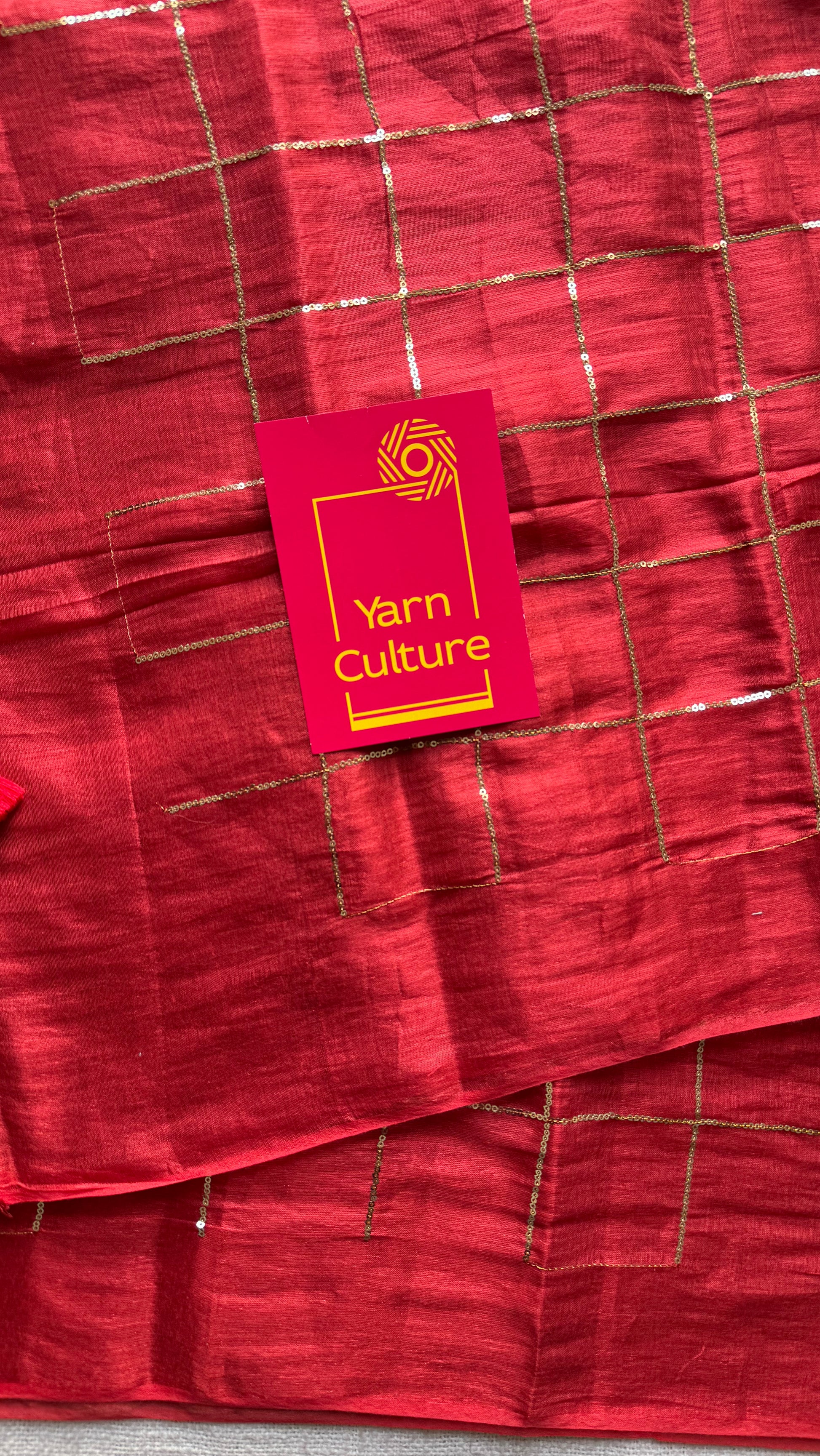 Red, checkered sequins work, mul tissue - YCBCMCJA07