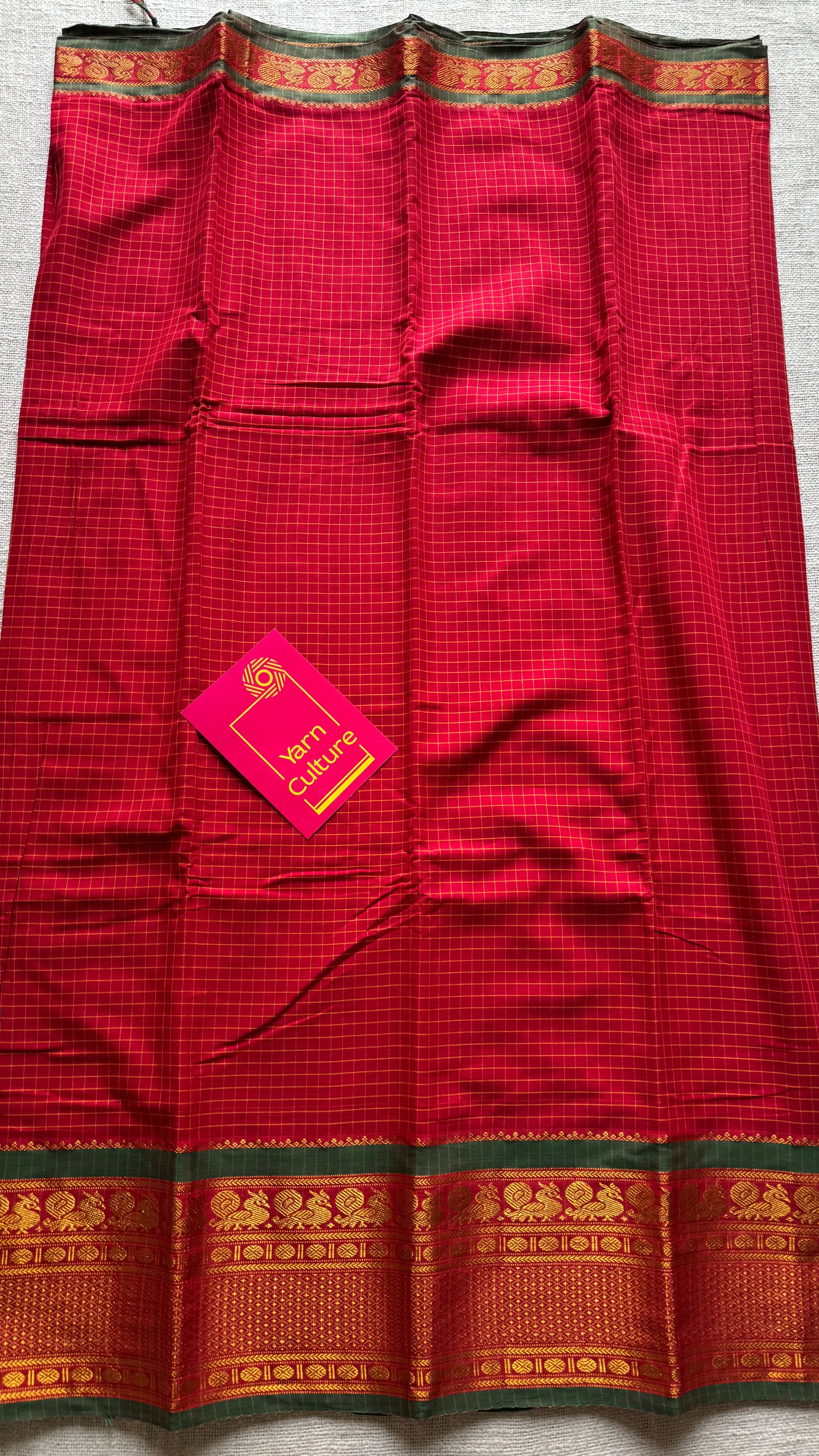 Red checks with zari border, premium narayanpet, soft cotton - YCWOTDOCNP05