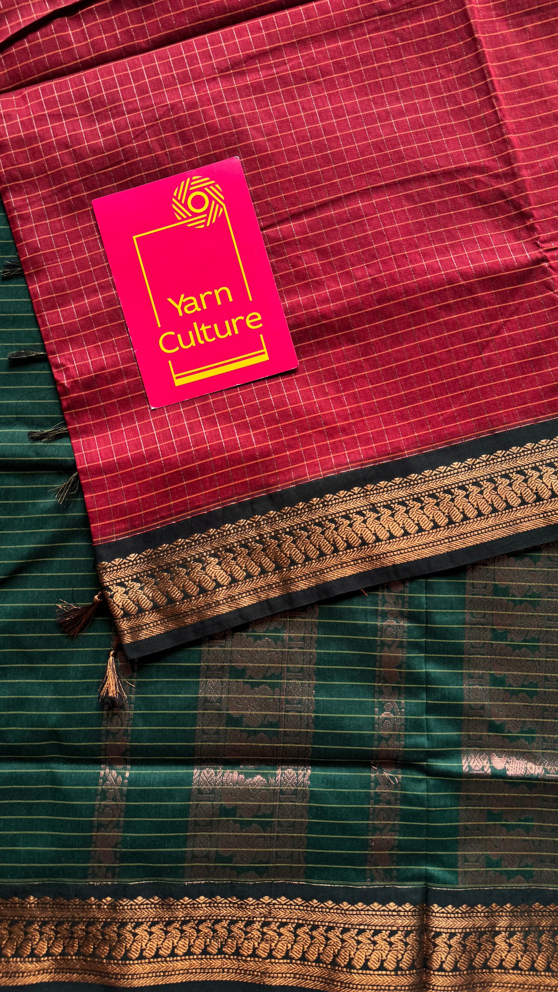Red with dark green, checks - cotton silk - YCCOTNSEKCS10