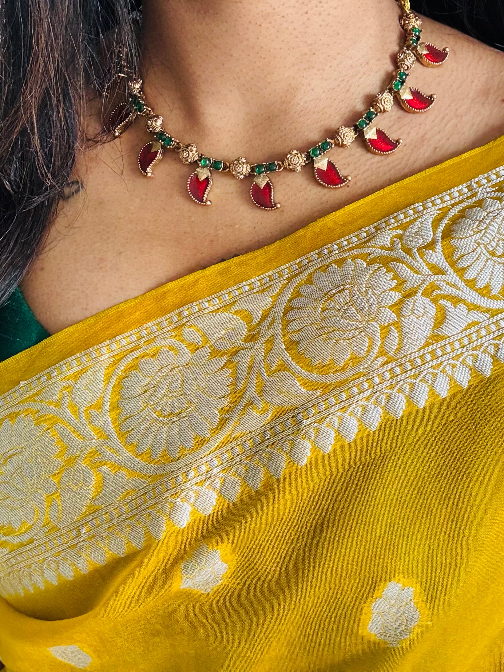 Red mango palakka neckpiece, with earrings.