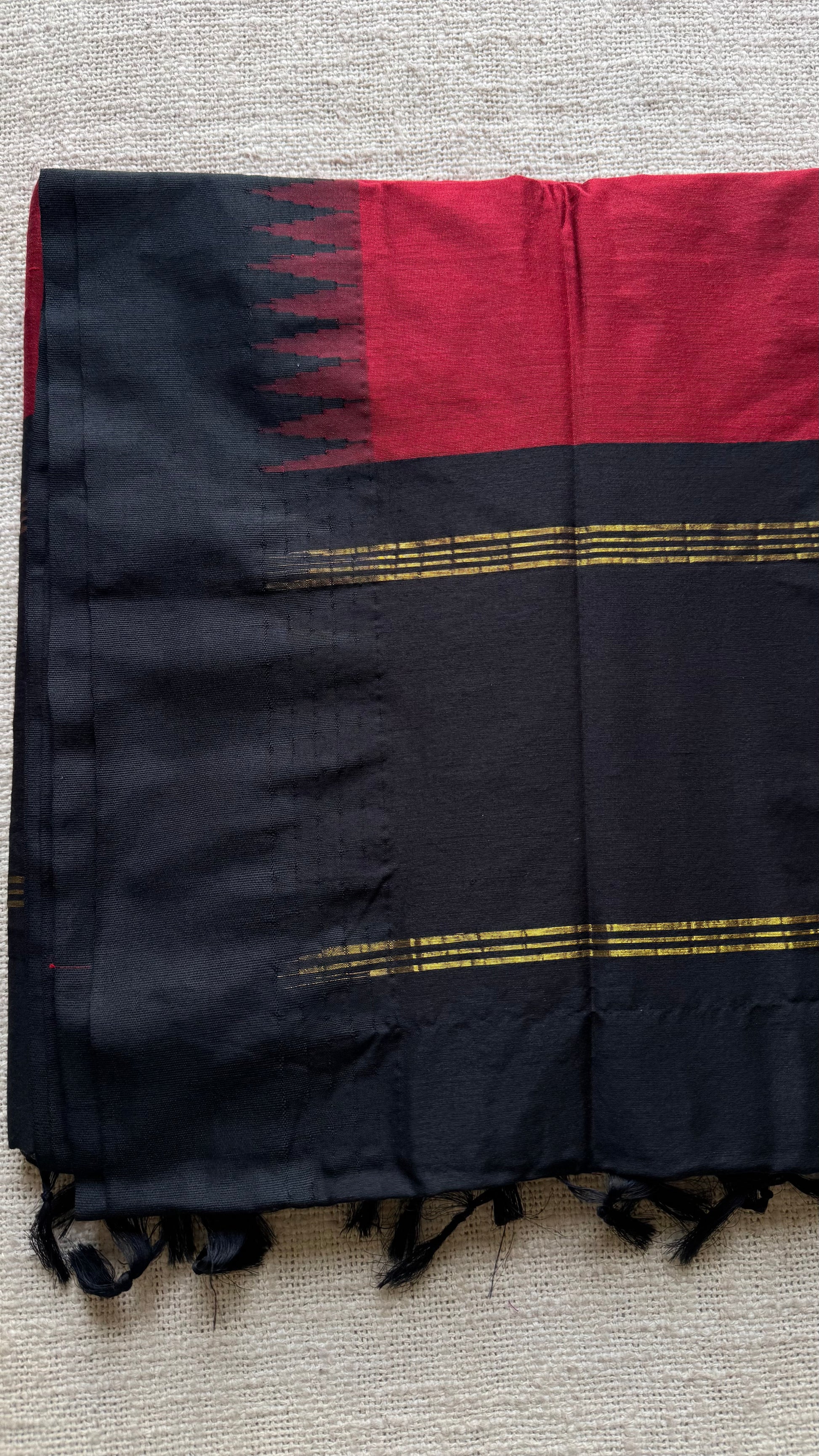 Red with black temple border - cotton silk - YCCOTNOCKCS4