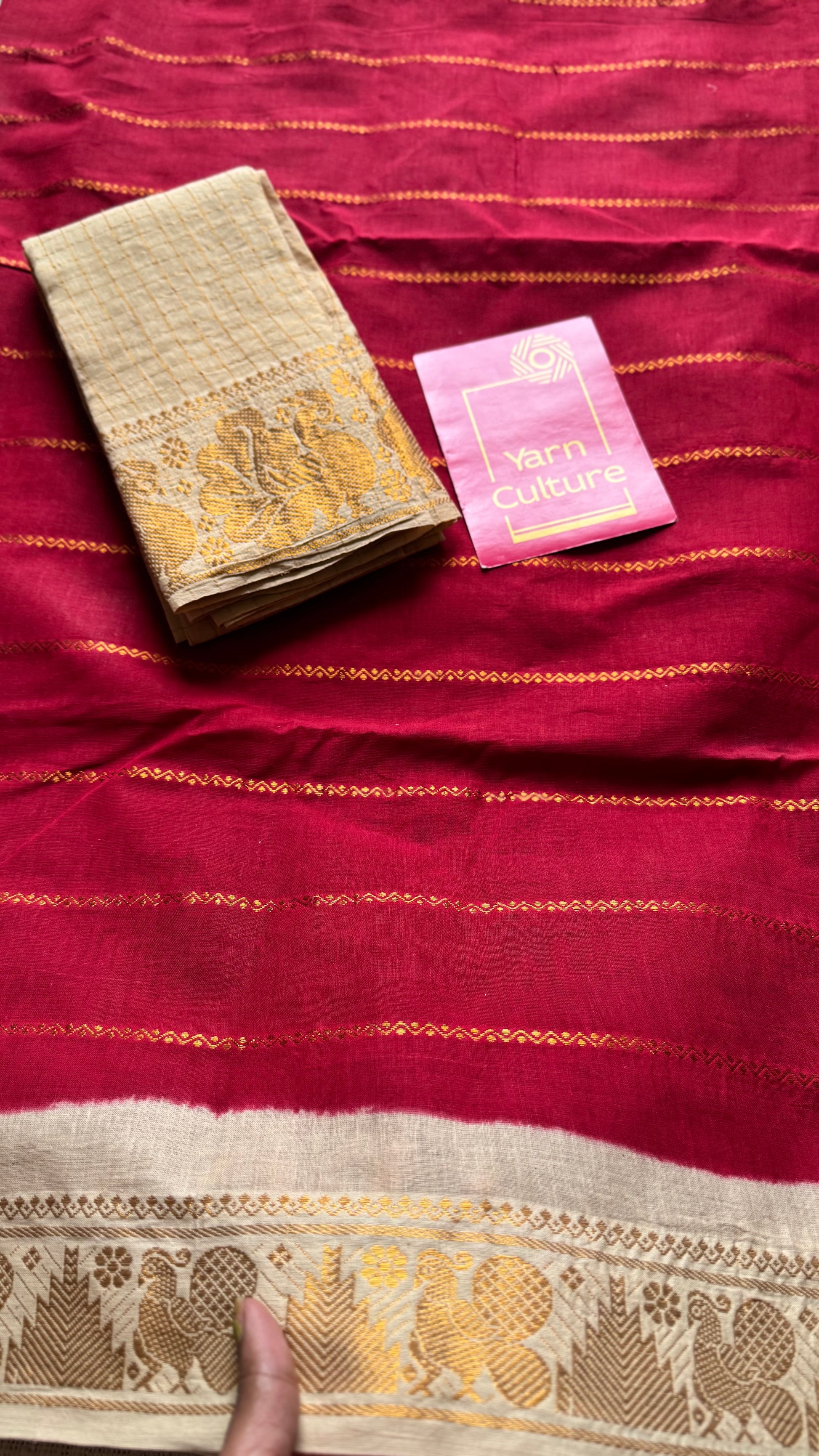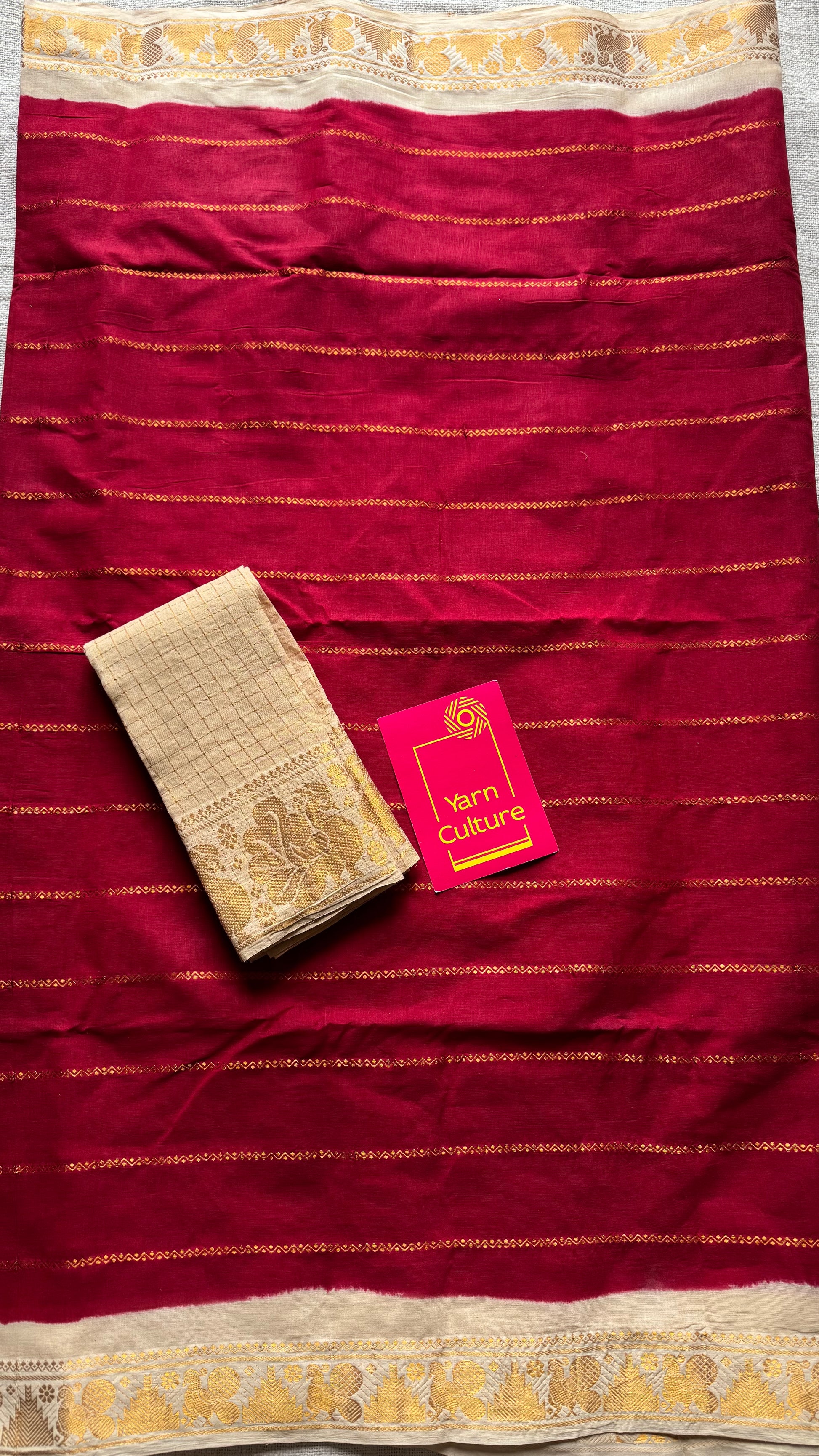 Red with cream veldhaari, kattuchayam dyed, madurai cotton, with contrast blouse fabric 💖