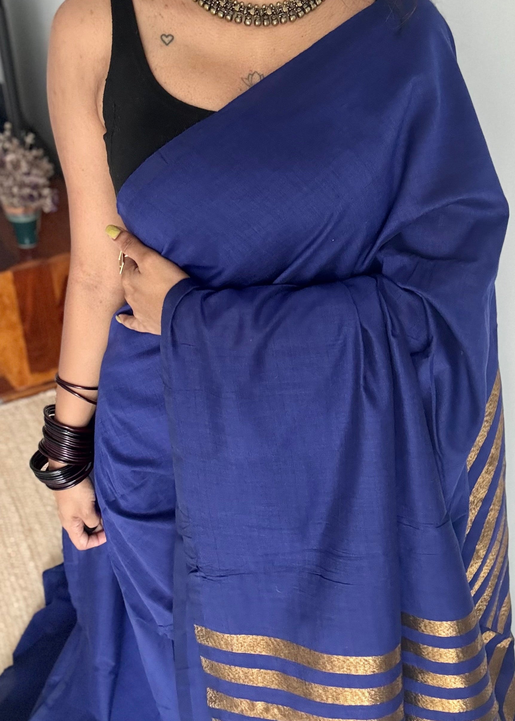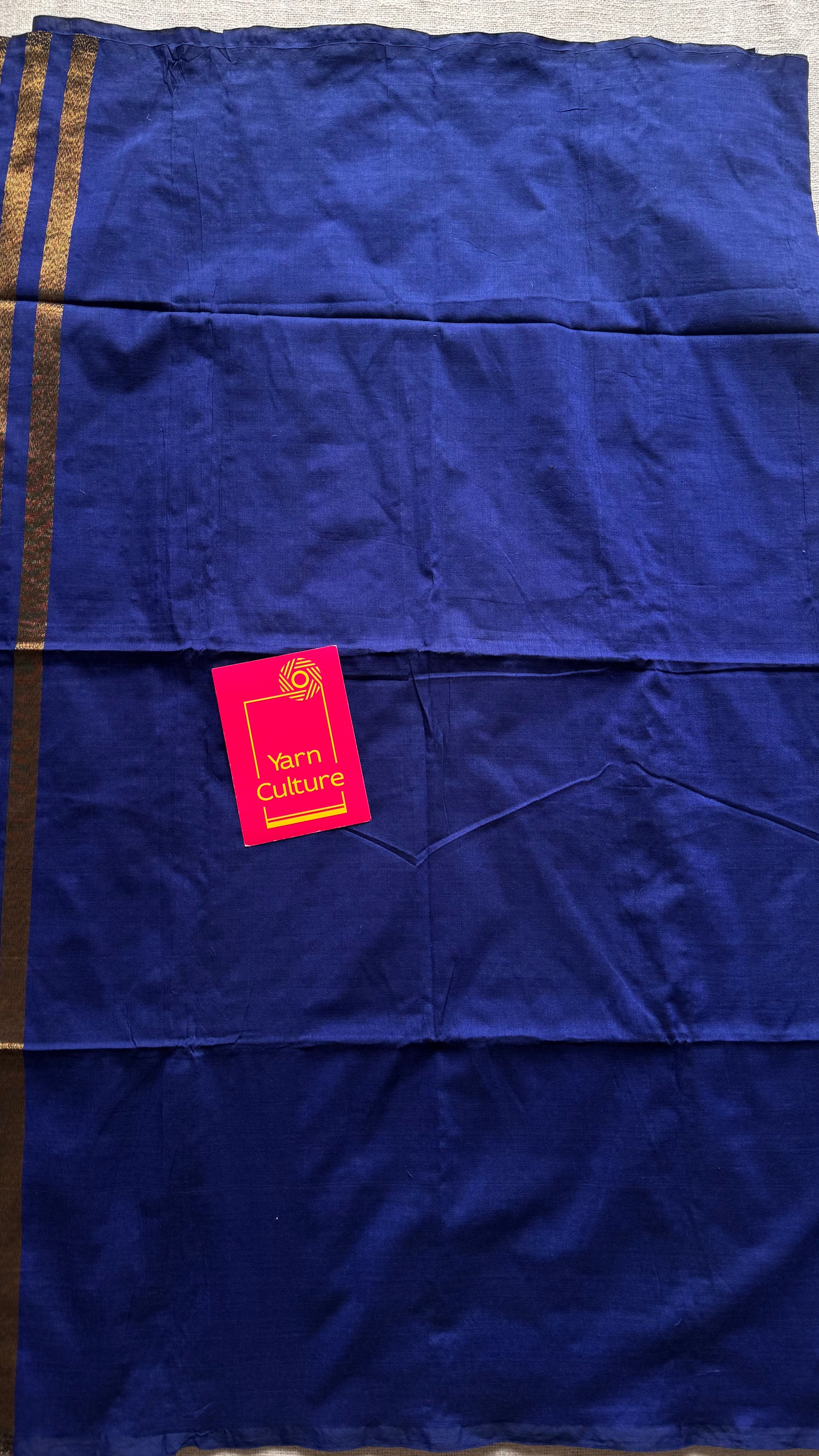 Royal blue khadi with antique gold pallu - YCBCKZPSE04