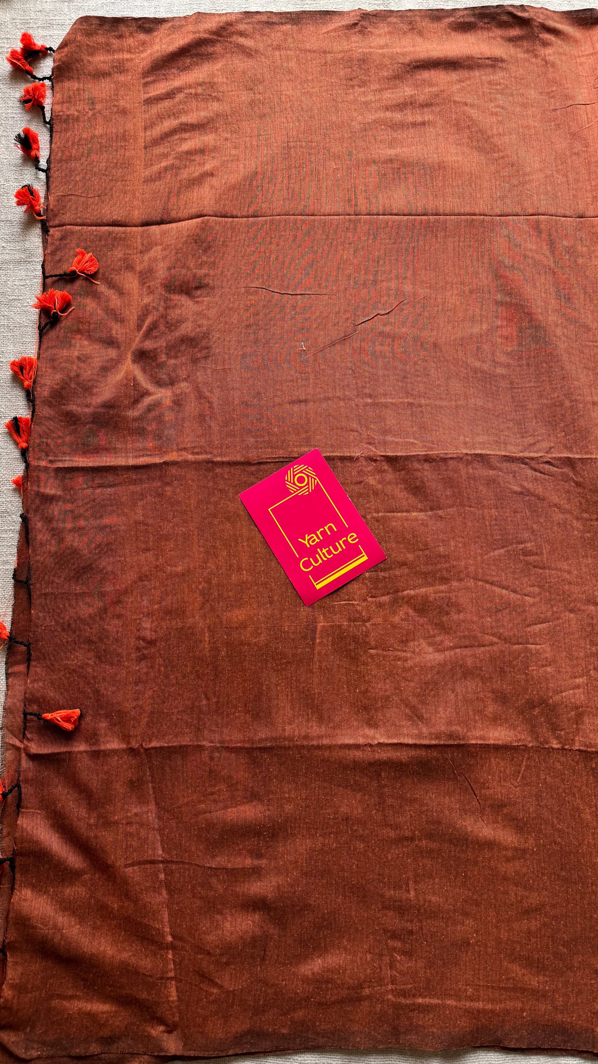 Plain rust orange soft cotton saree - airy, breathable, and made for long summer days. Easy to drape, soft, easy to drape.