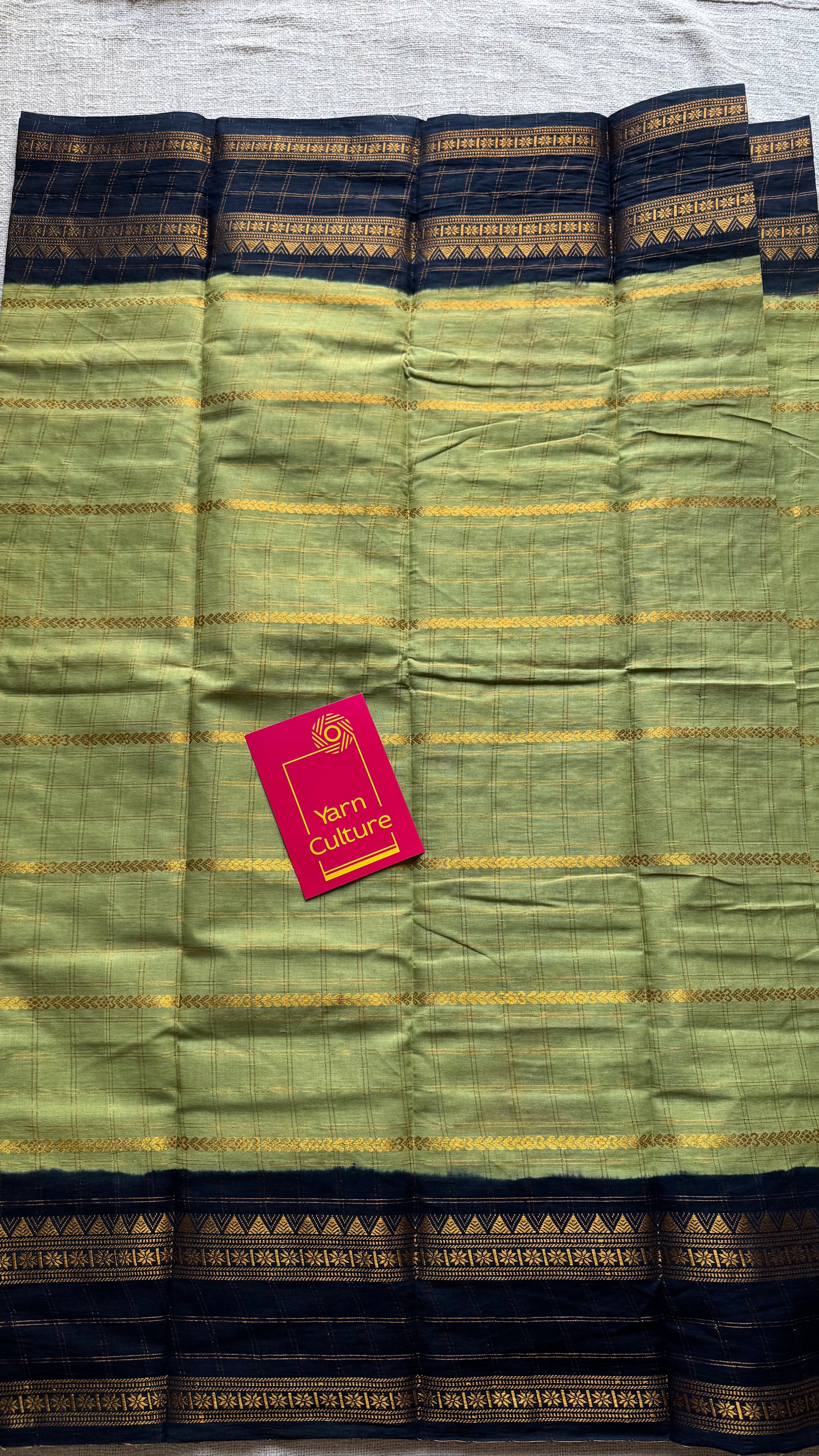 Pista green with black, Adayar checks with velthaari pattern, madurai cotton - YCCOTNOCSC08
