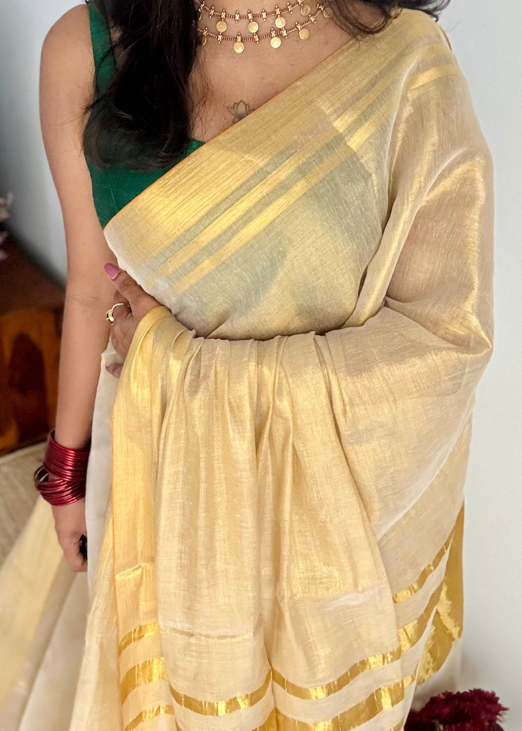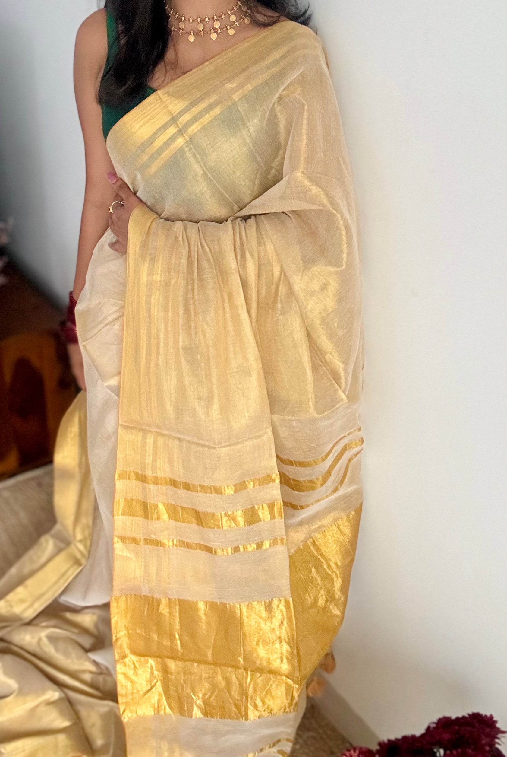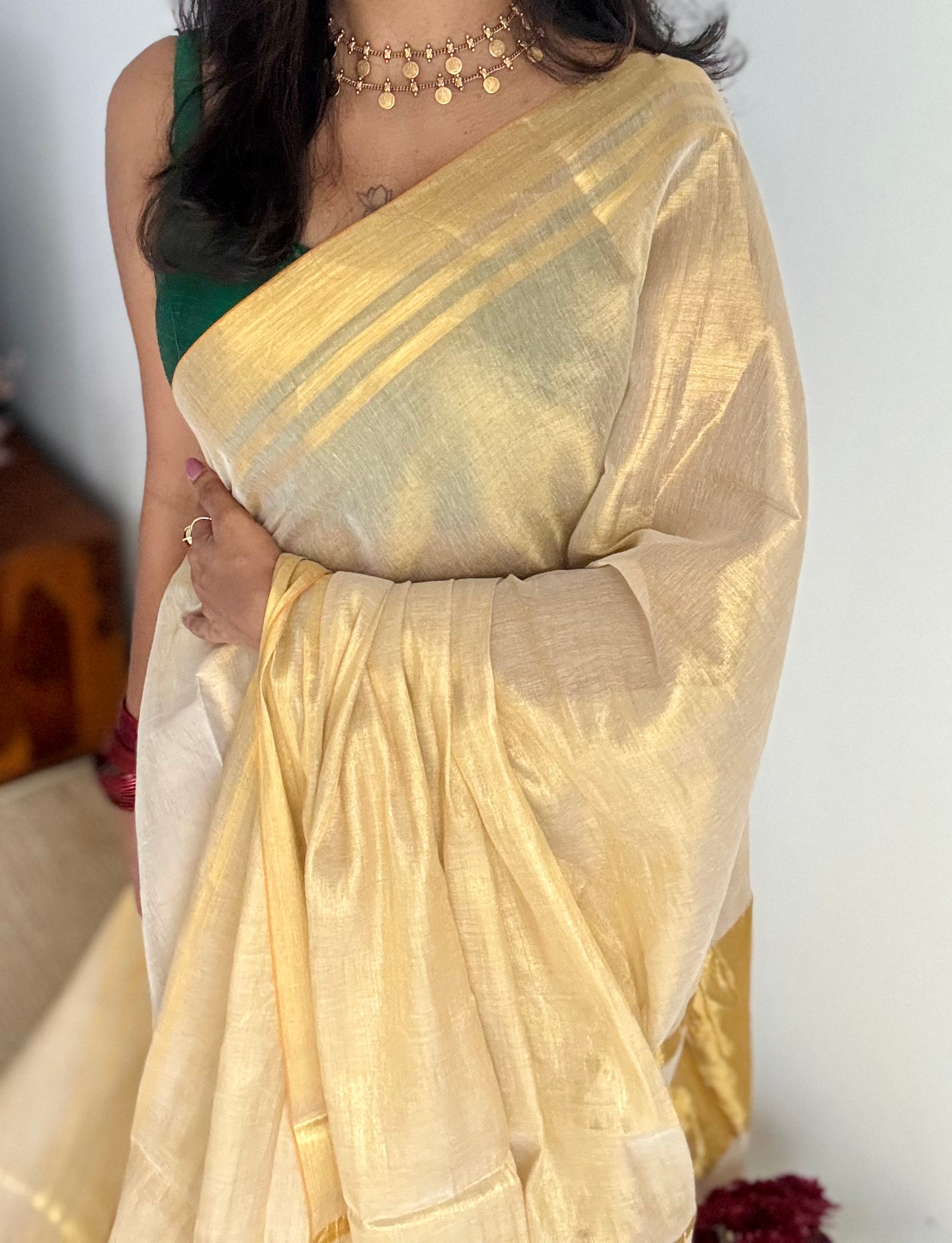 Material: Soft Linen tissue/Additional info: With running blouse, Length of saree : 6.3m/ Width: 47”