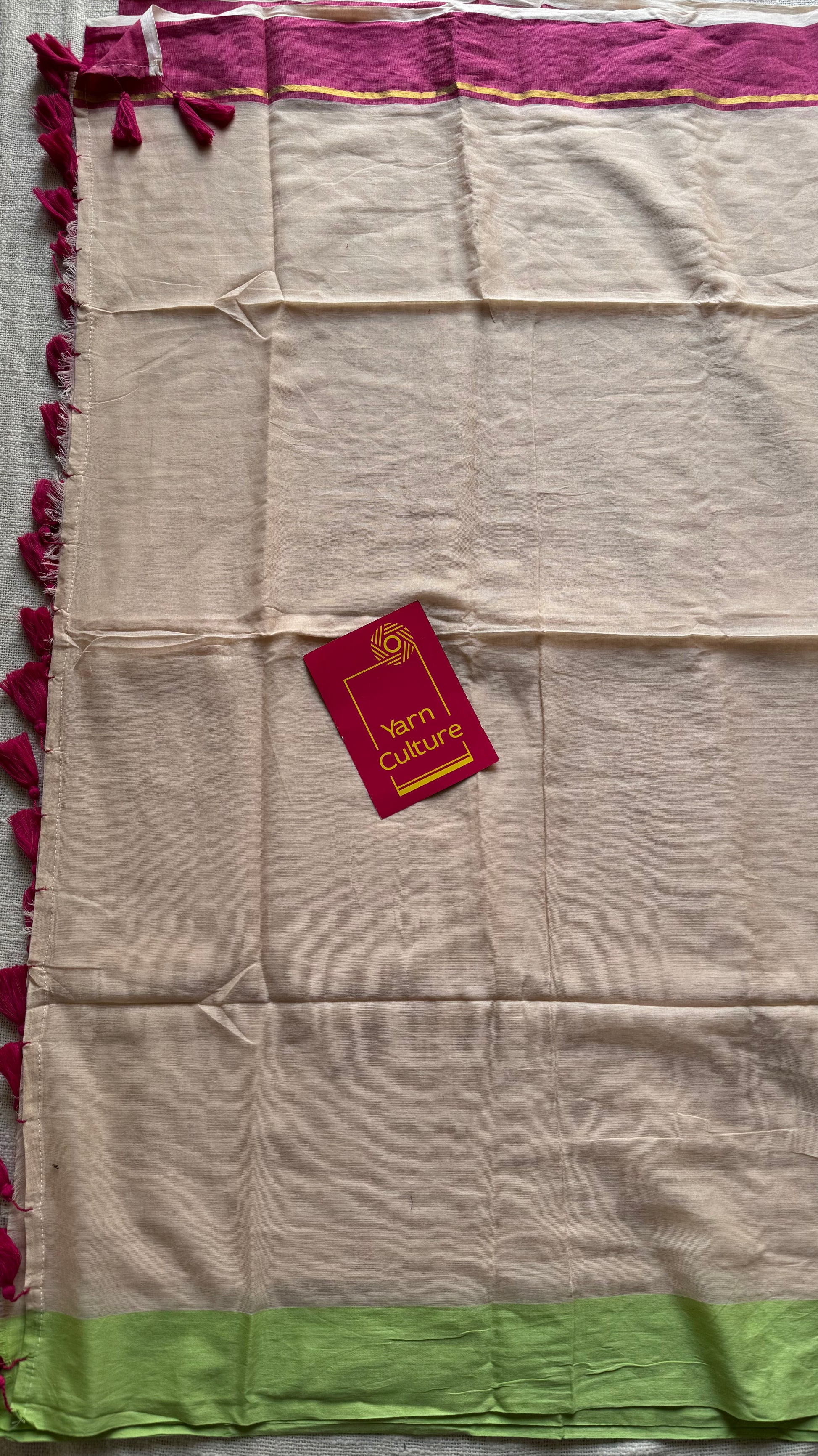 Sandal mul saree with pink and pista green borders - YCBCMCFE292