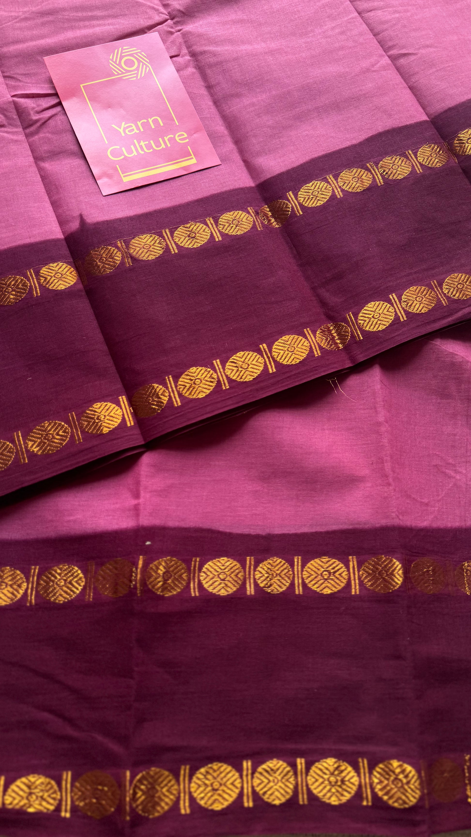 Dusty pink with dark maroon sungudi, kattuchayam dyed, madurai cotton - YCCOTNOCSC12