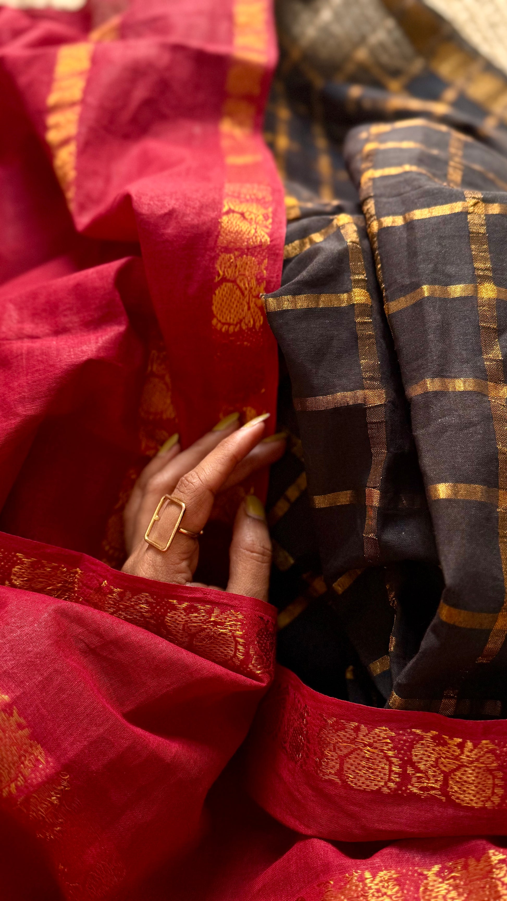 Silai (சிலை) : red with black, sungudi cotton - YCENOID09
