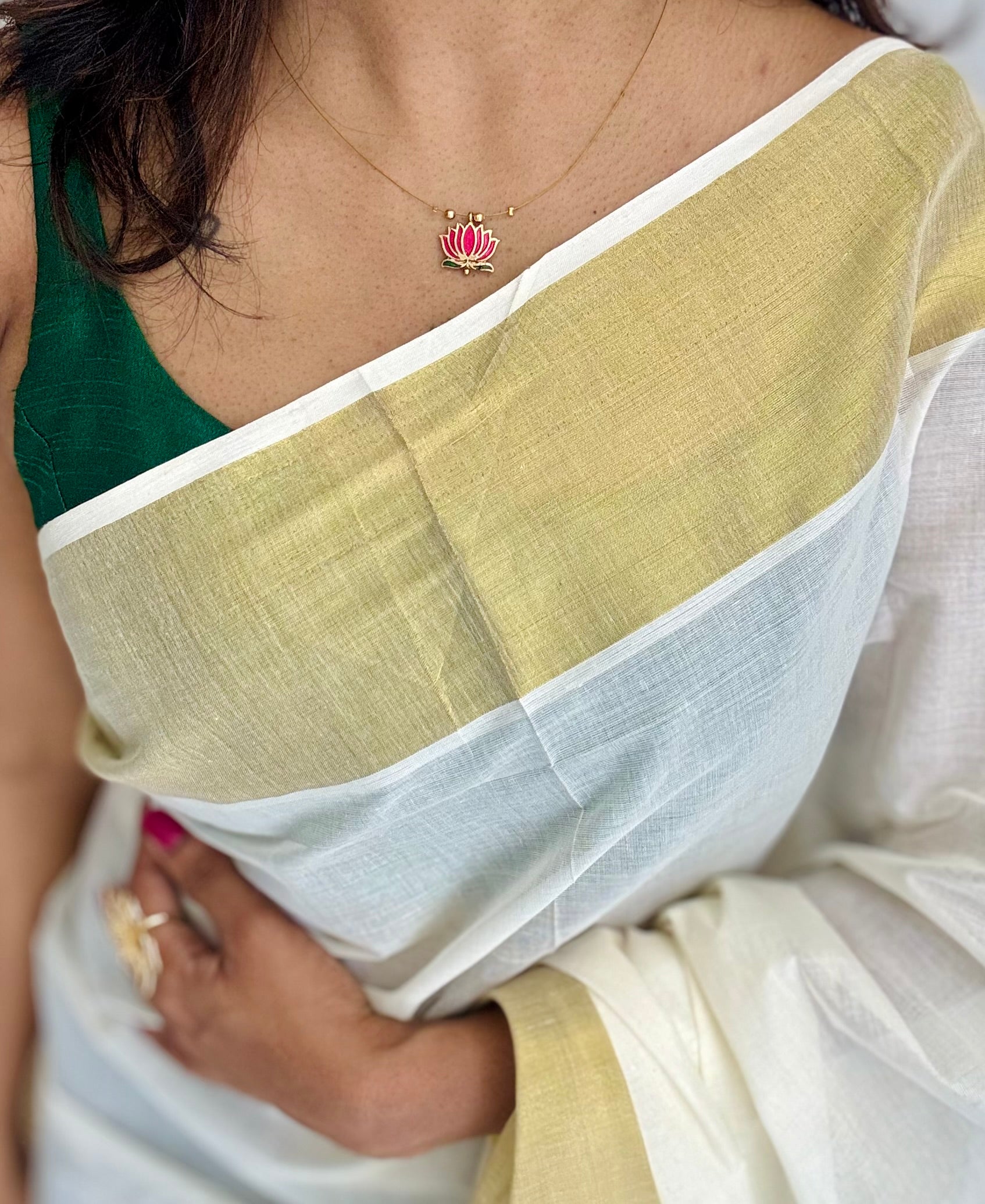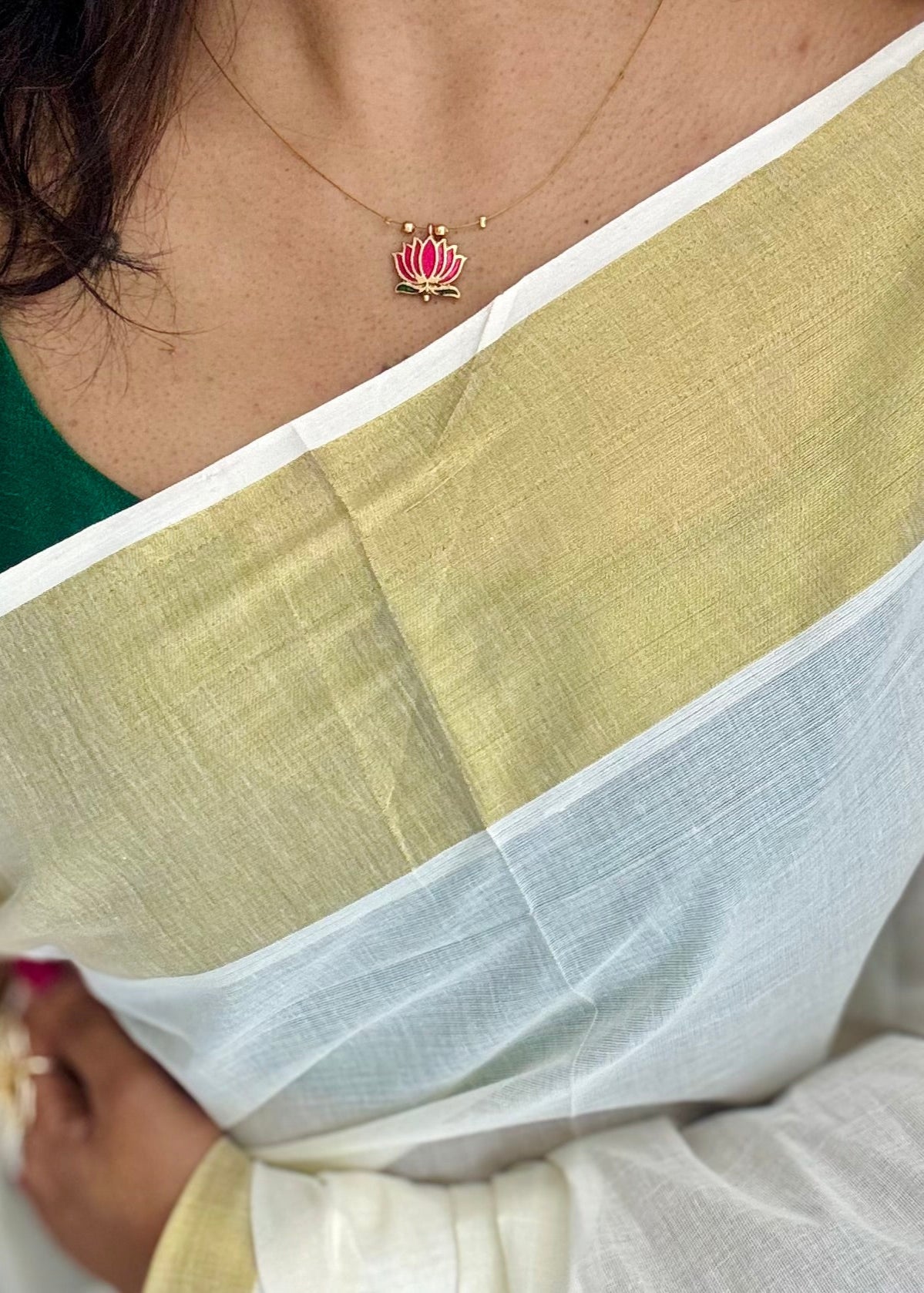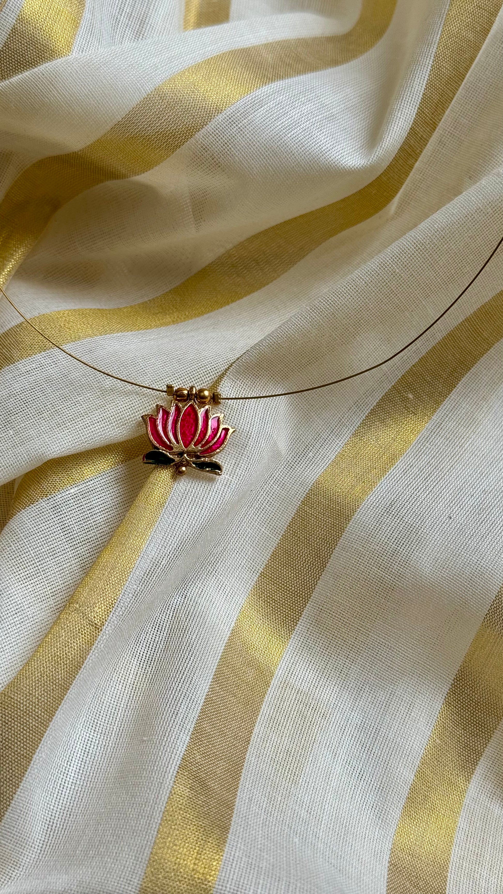 Single pink lotus pendant in invisible chain, minimally elegant.
