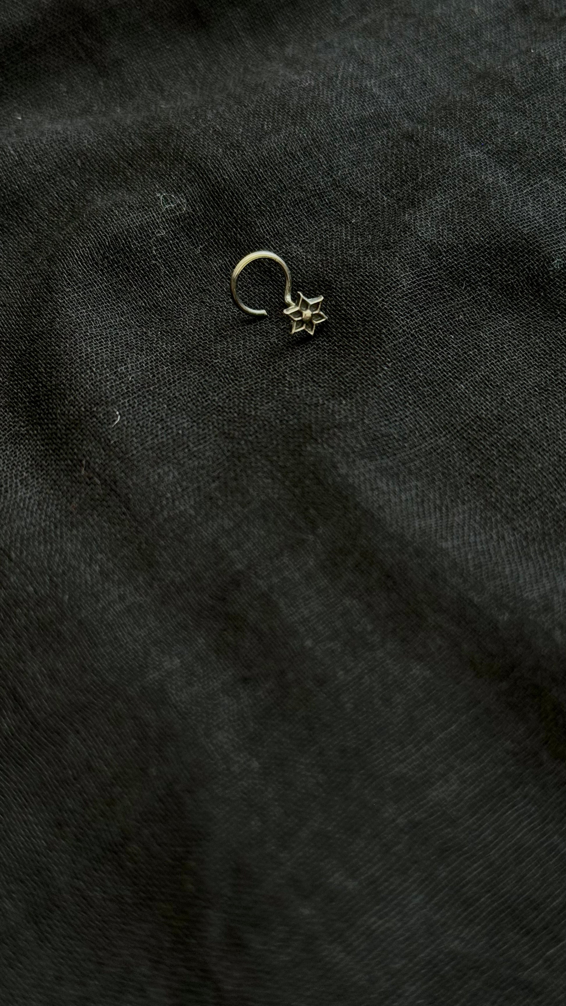 Small floral nose pin, intricate pattern in pure silver - YCNPP31