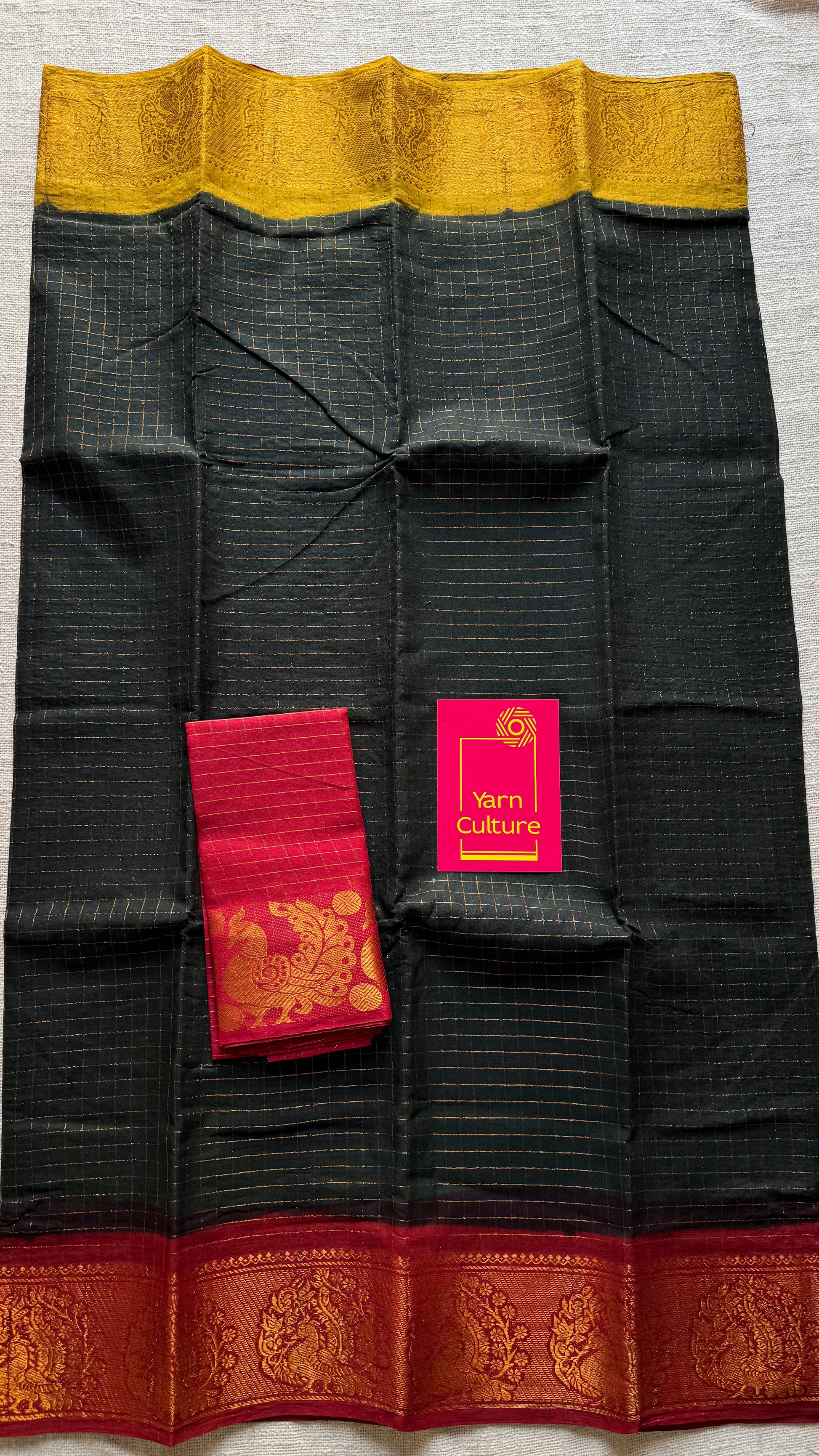 Sungudi cotton checks, black base, red and yellow dual tone border, soft cotton - YCCOTNGJJA180