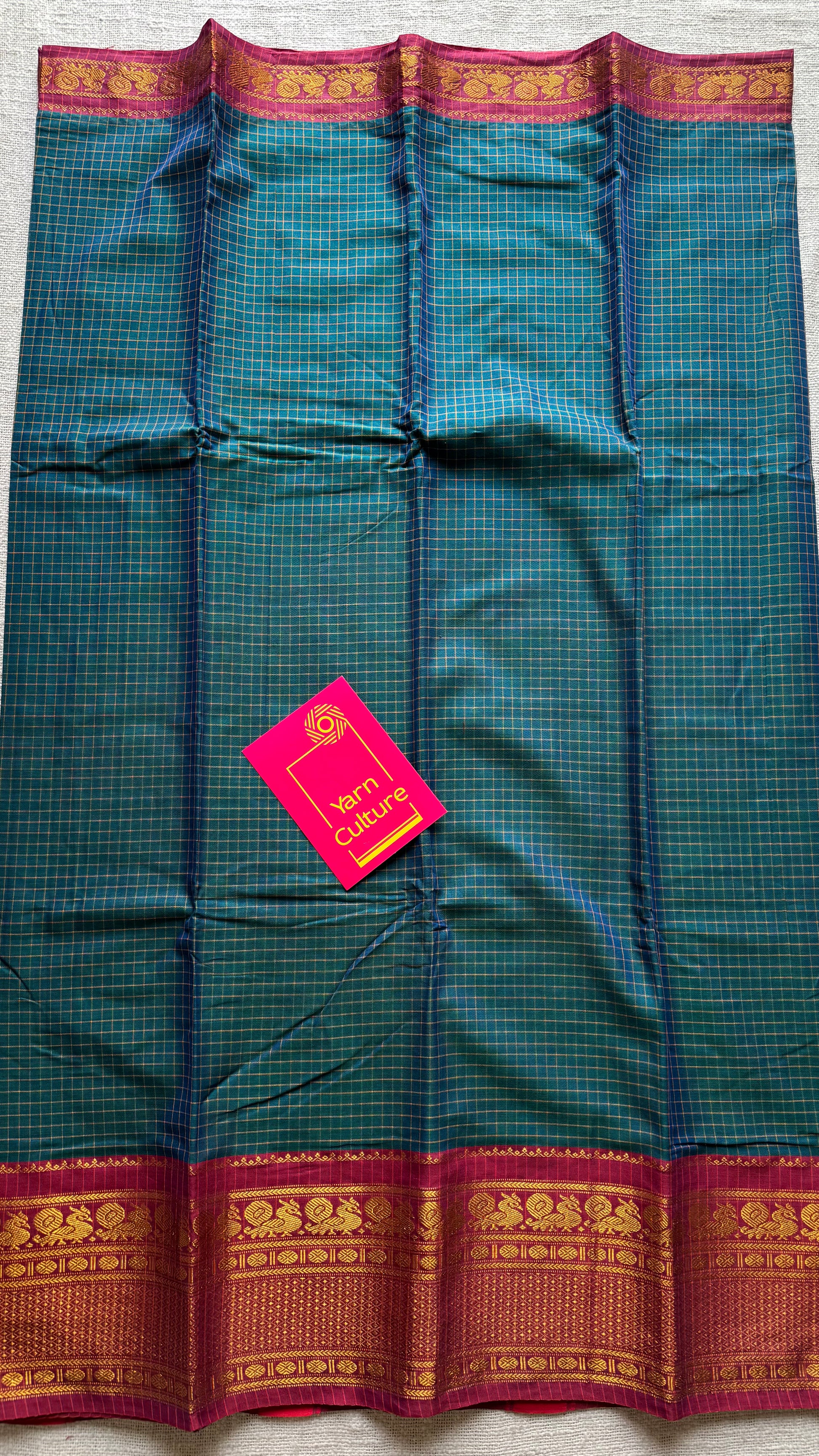 Teal checks with zari border, premium narayanpet, soft cotton - YCWOTDOCNP03