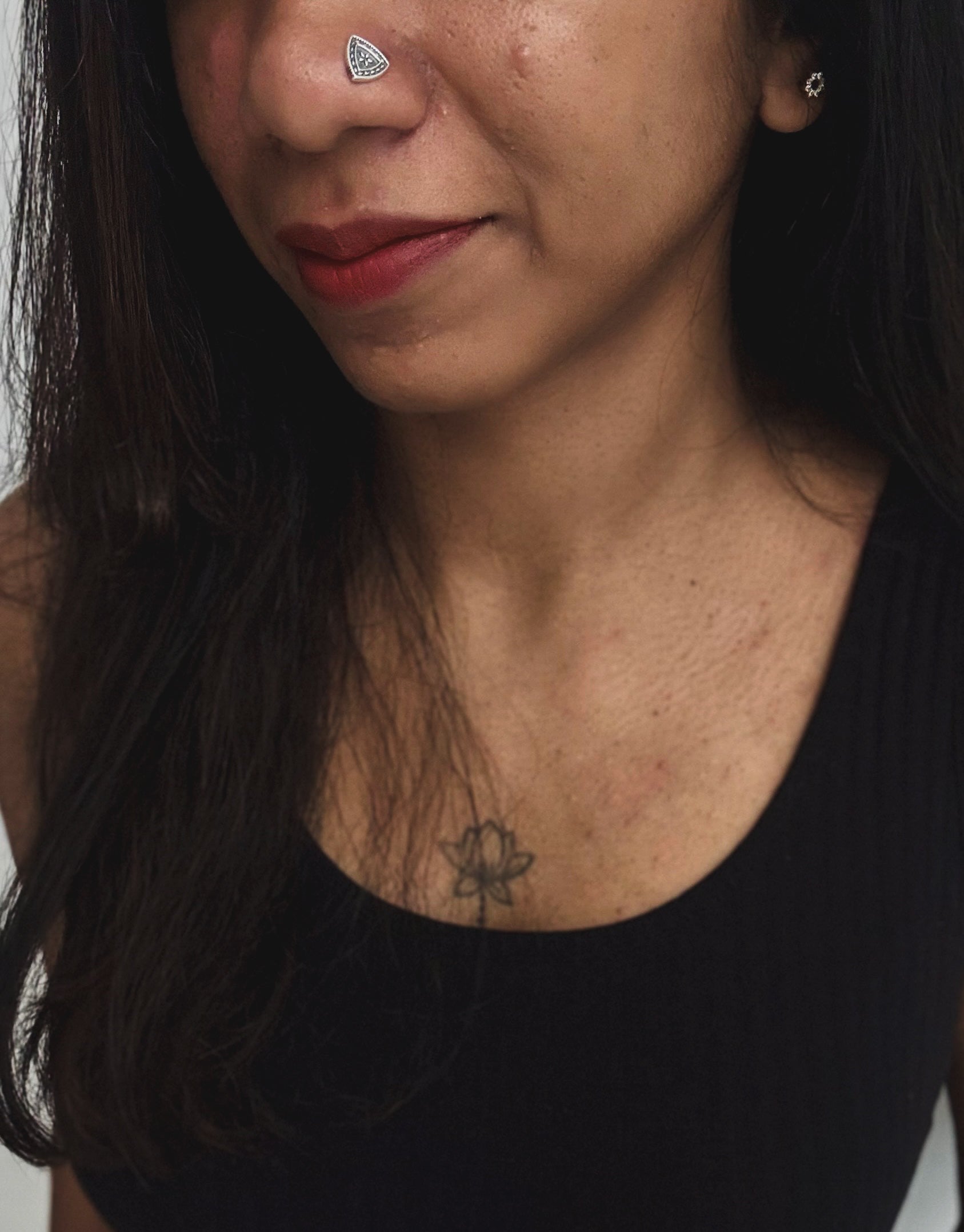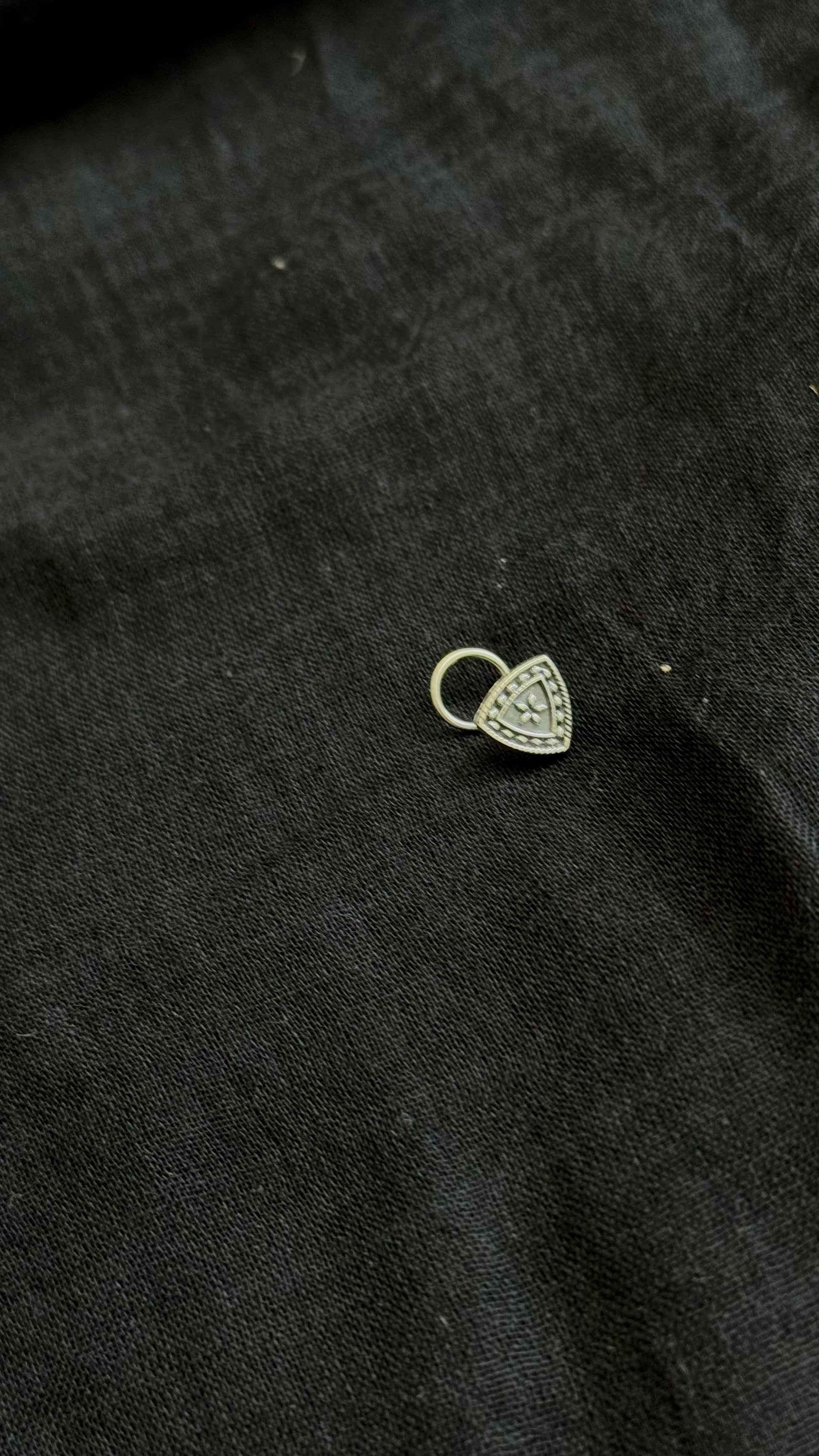 Triangle floral nose pin, intricate pattern in pure silver - YCNPP33