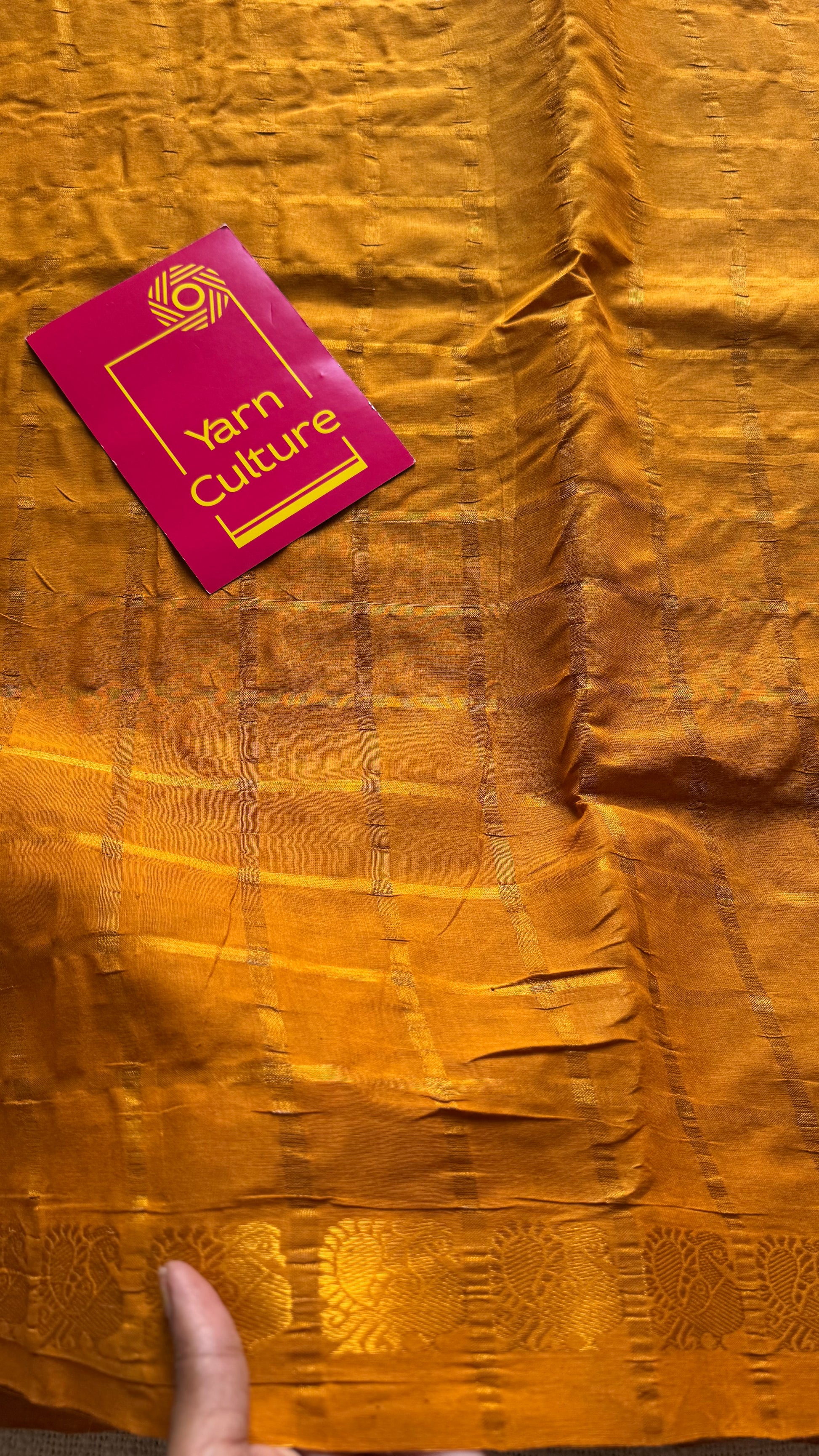 Turmeric yellow pavithra kattam kattuchayam dyed madurai cotton saree - YCCOTNMSFE141