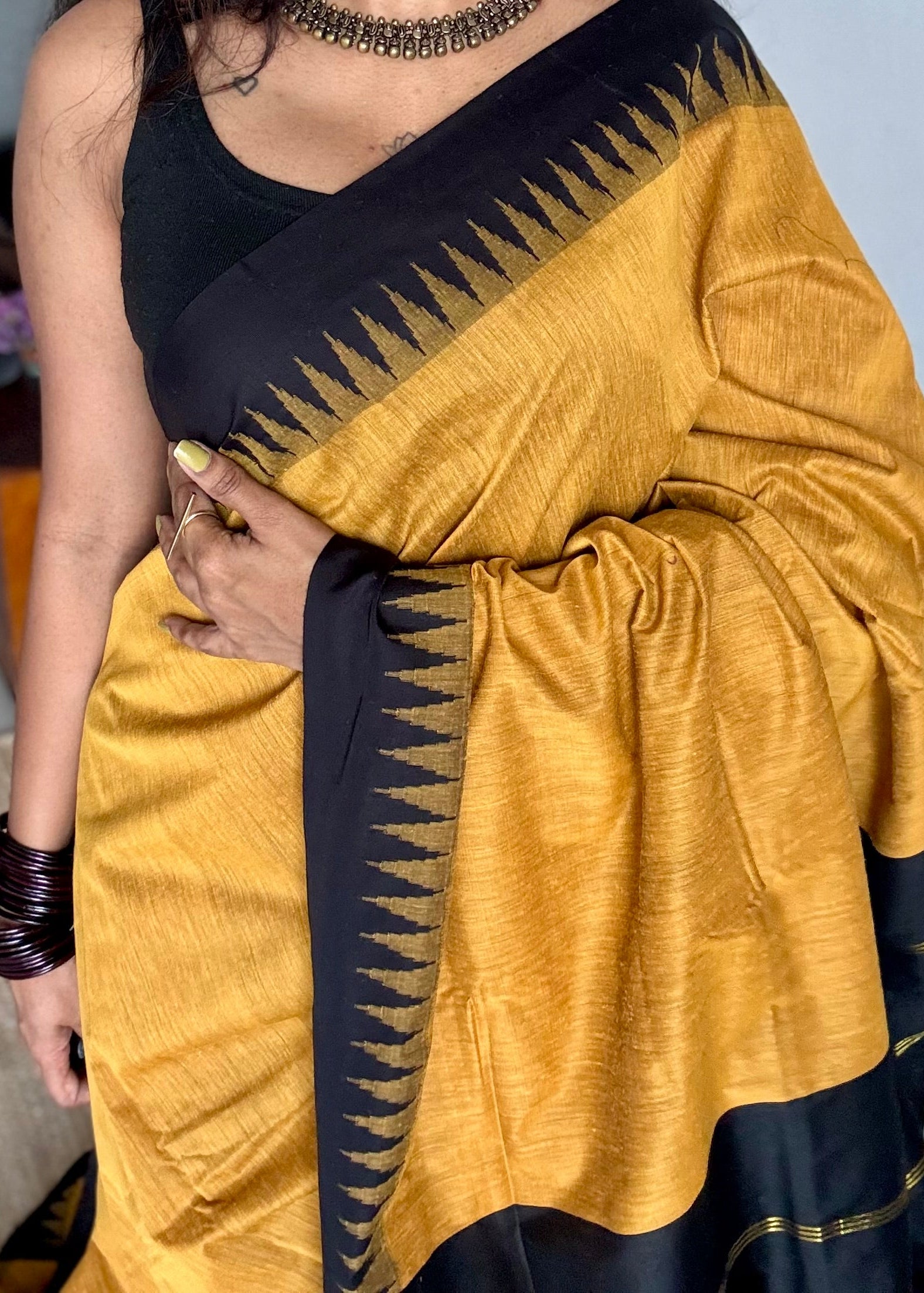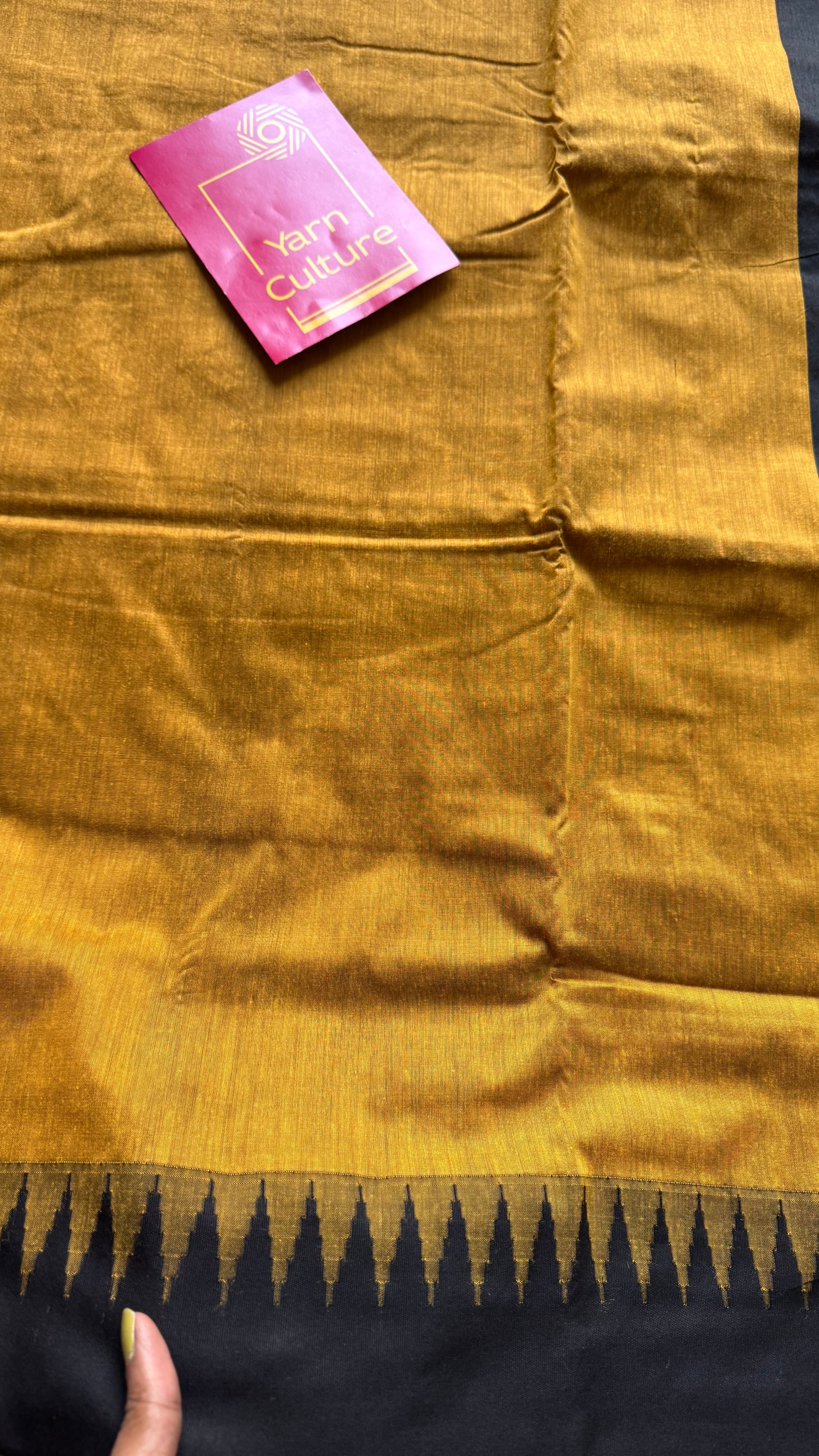 Turmeric yellow with black temple border, cotton silk - YCCOTNCSDE94