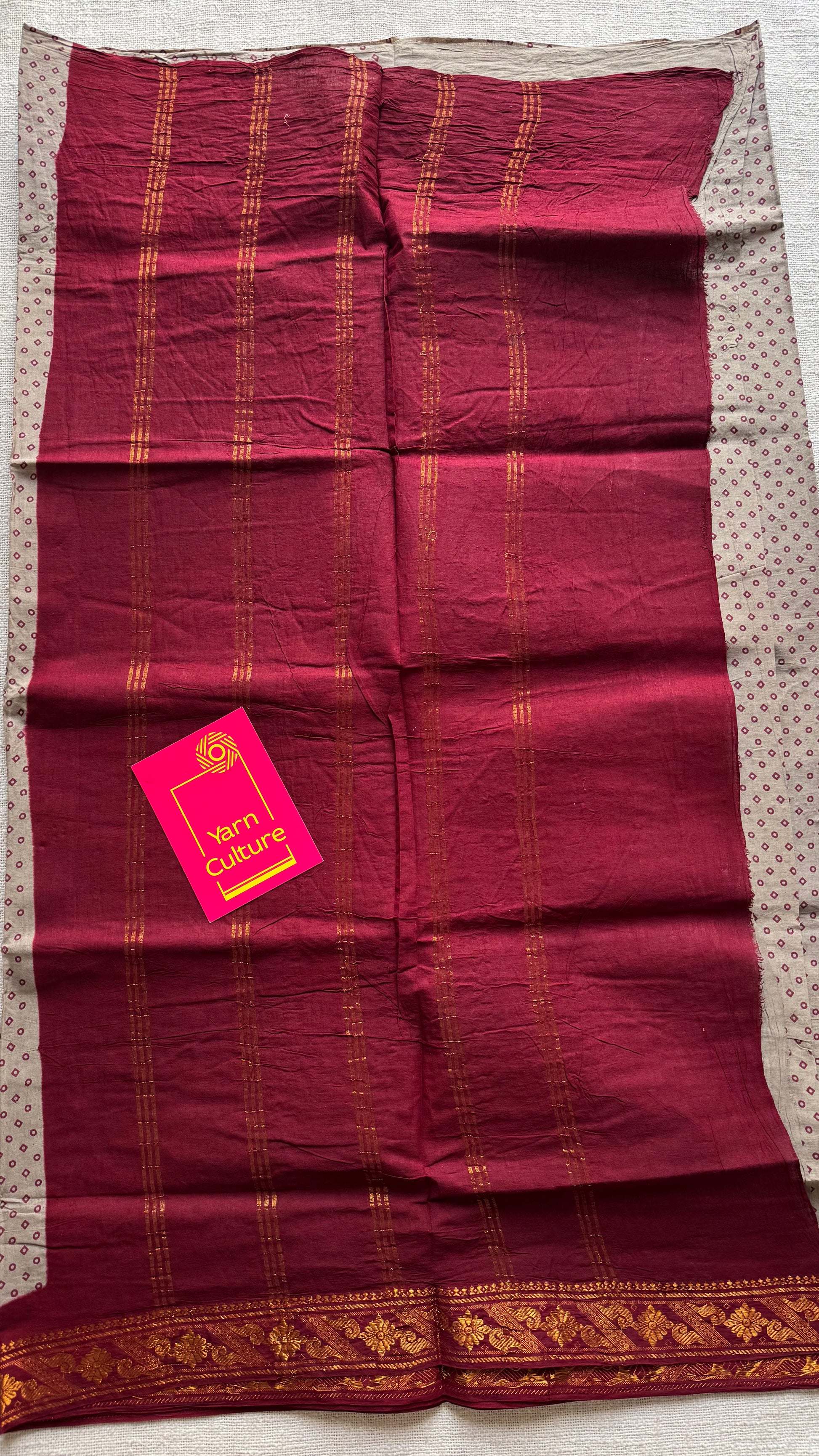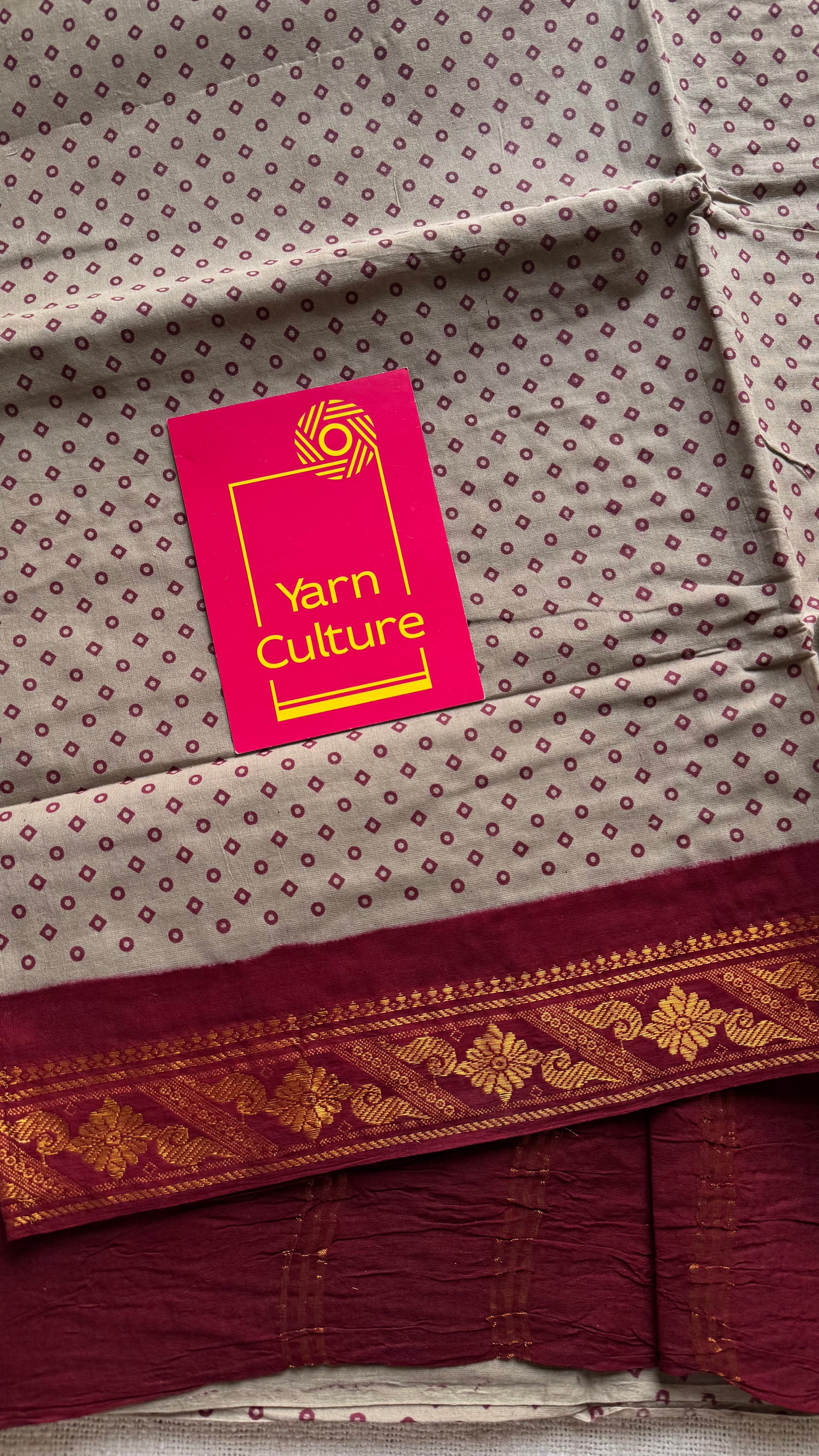 Warm grey with red, kattuchayam dyed madurai sungudi cotton saree - YCCOTNMSFE01