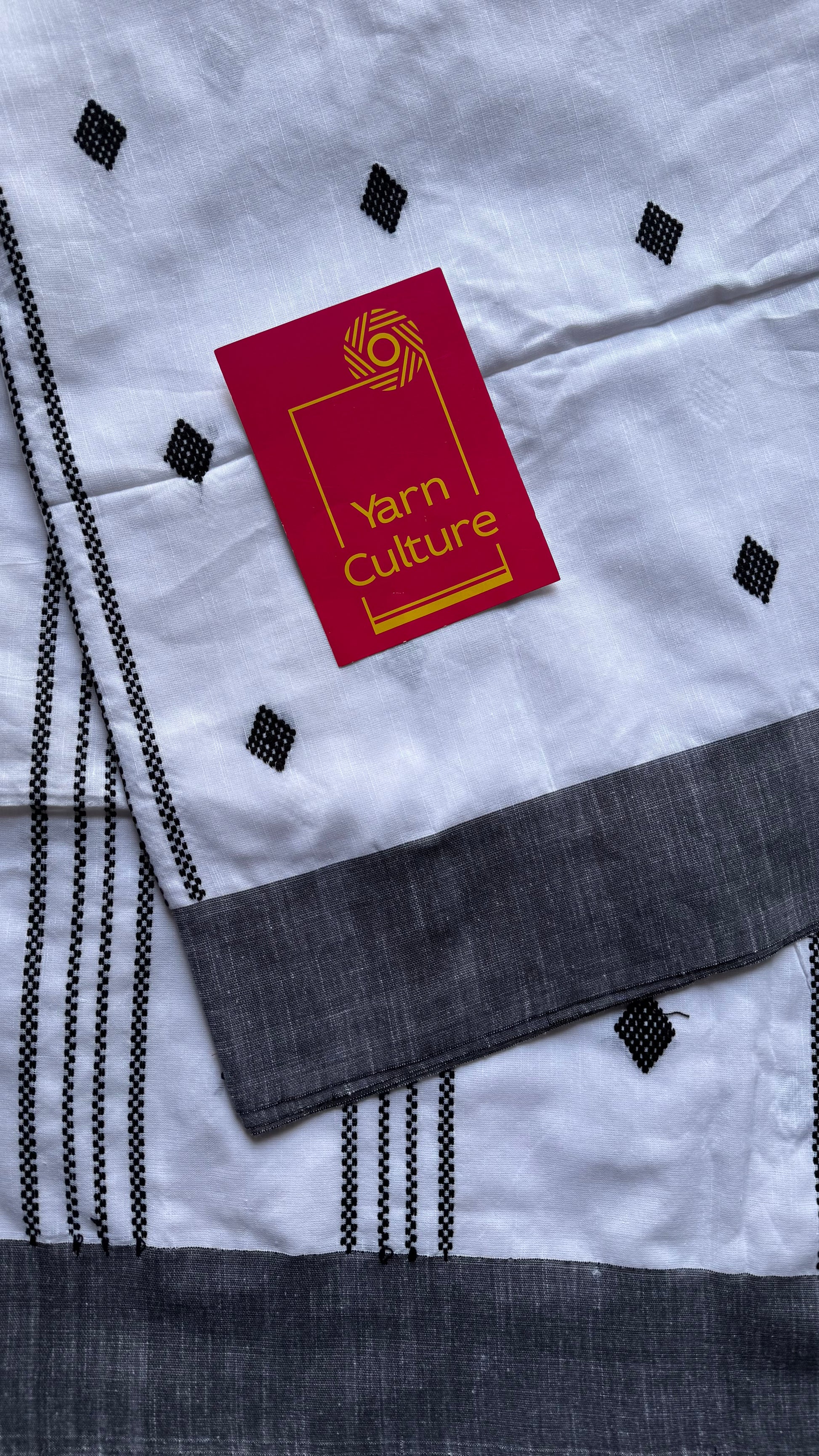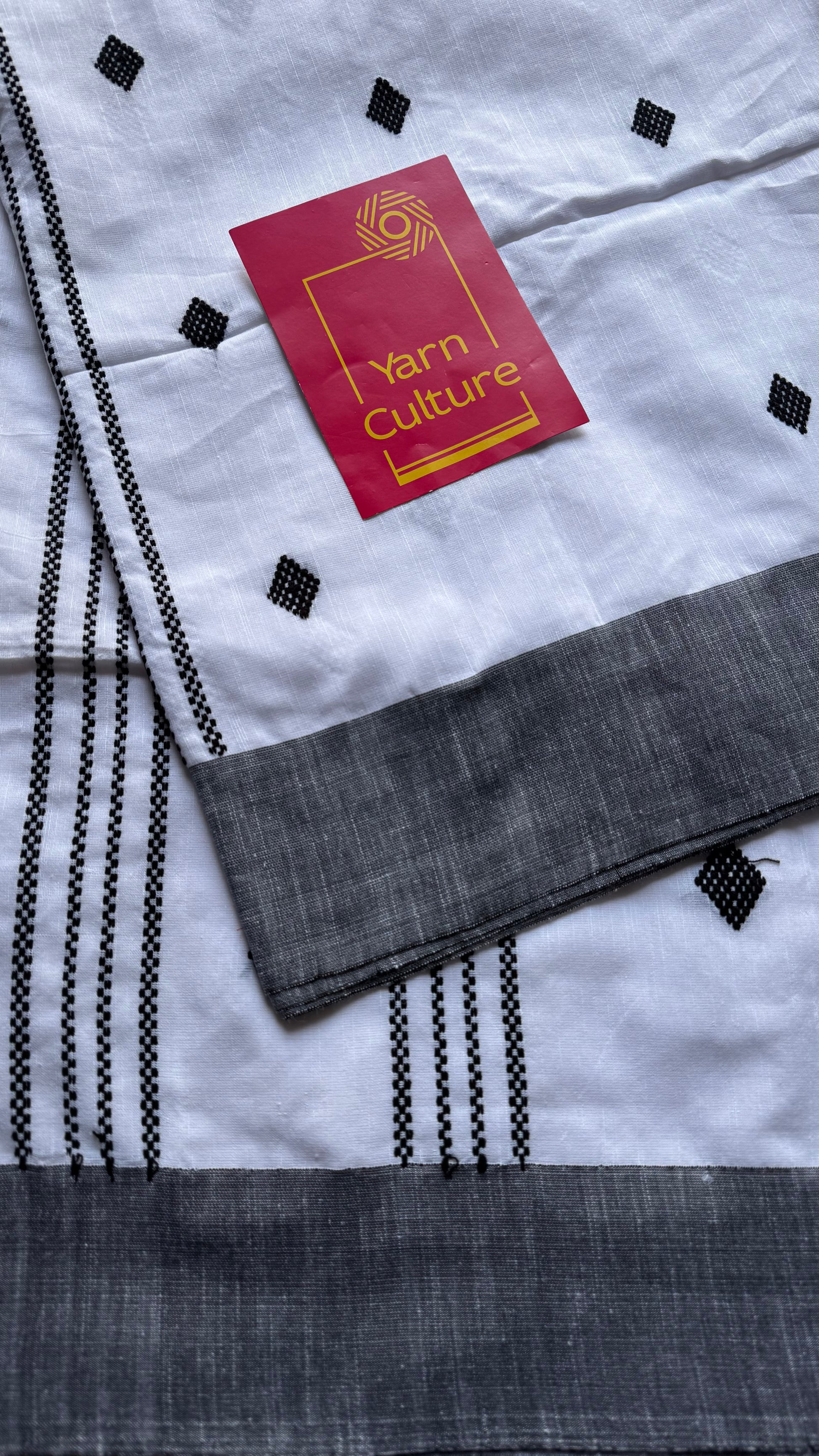 White with black, soft khadi cotton with woven motifs - YCBCKCDE23