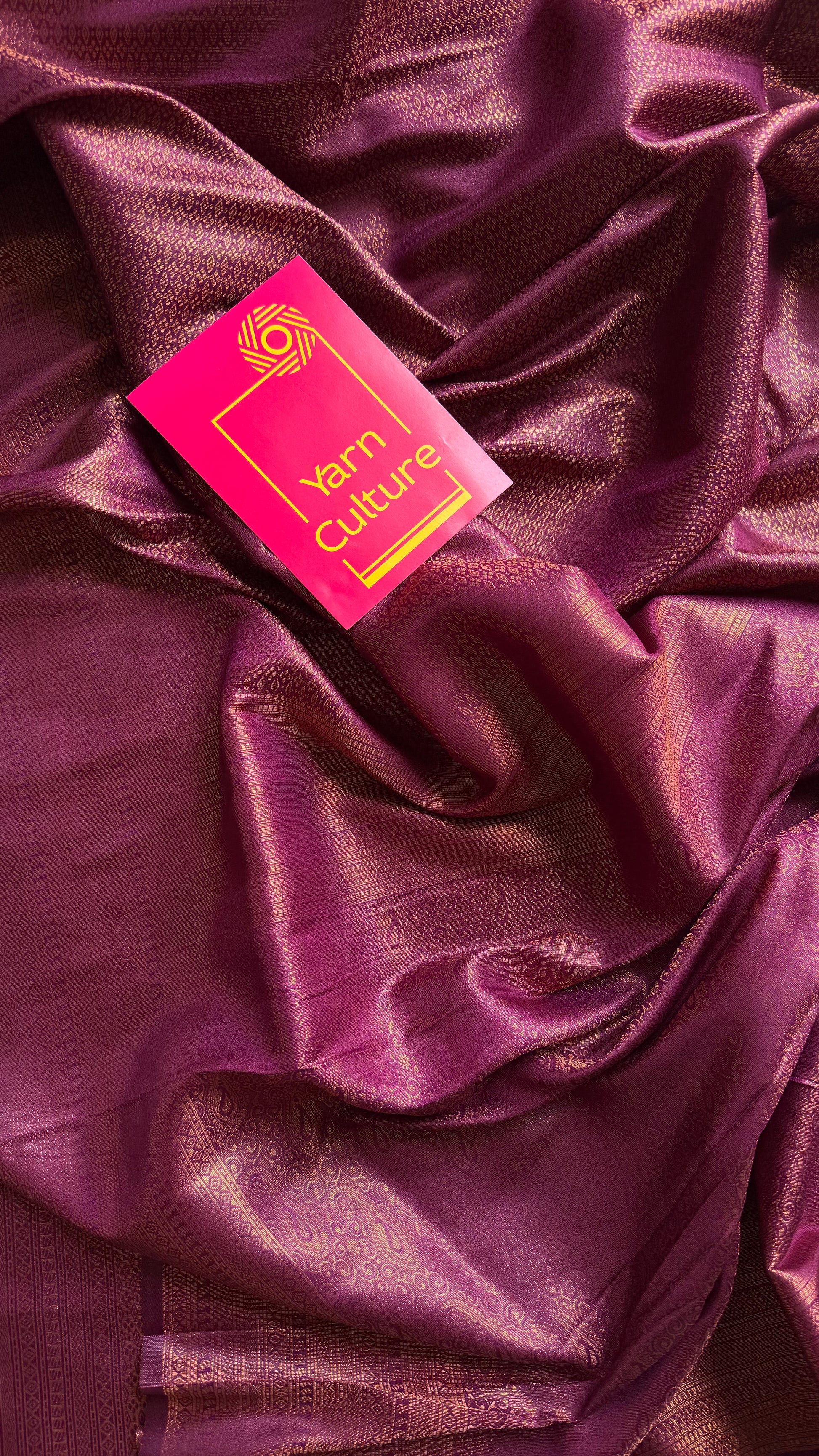 Wine, antique gold zari, semi-silk - YCDOSOCSS05