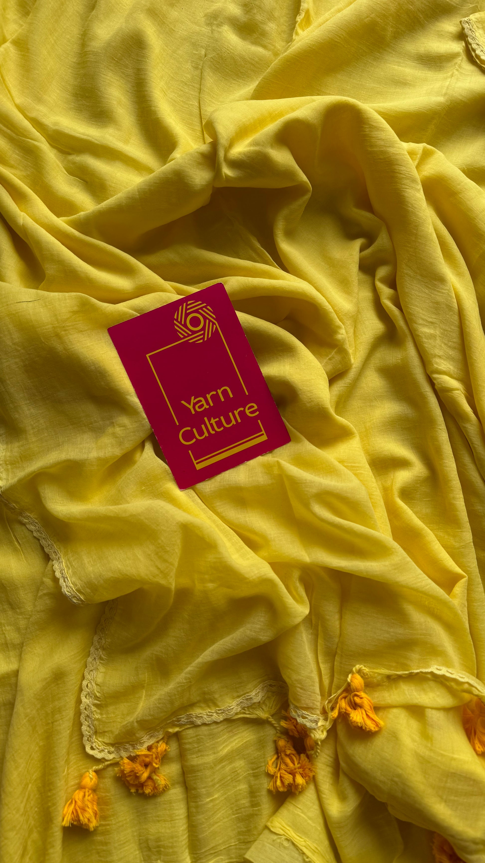 Everybody's favourite mul cotton in solid tone with a pretty lace border and tassels.