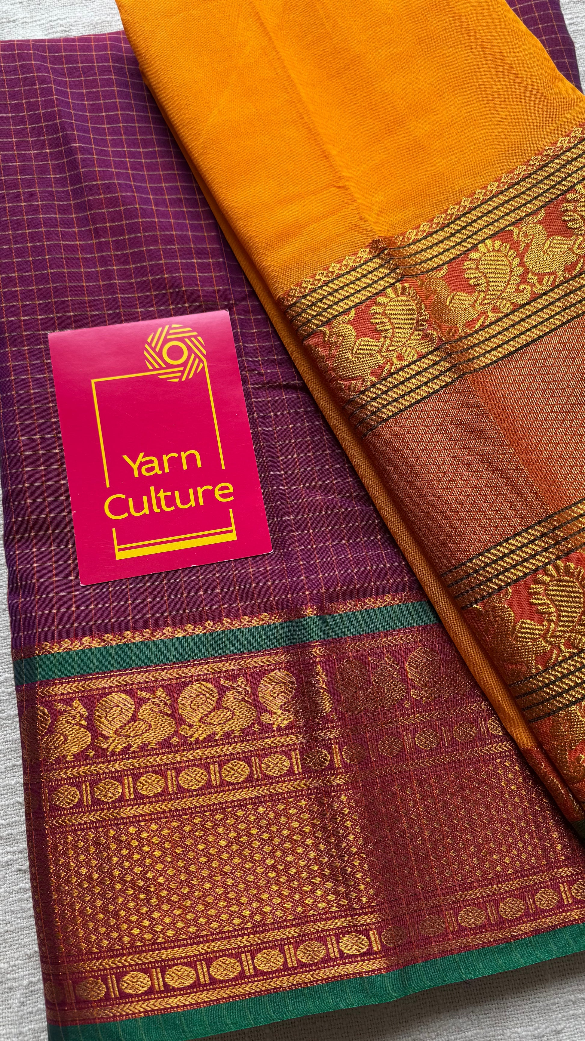 Yellow - Purple pink half saree (dhavani), unstitched material, soft cotton - YCAHSN19
