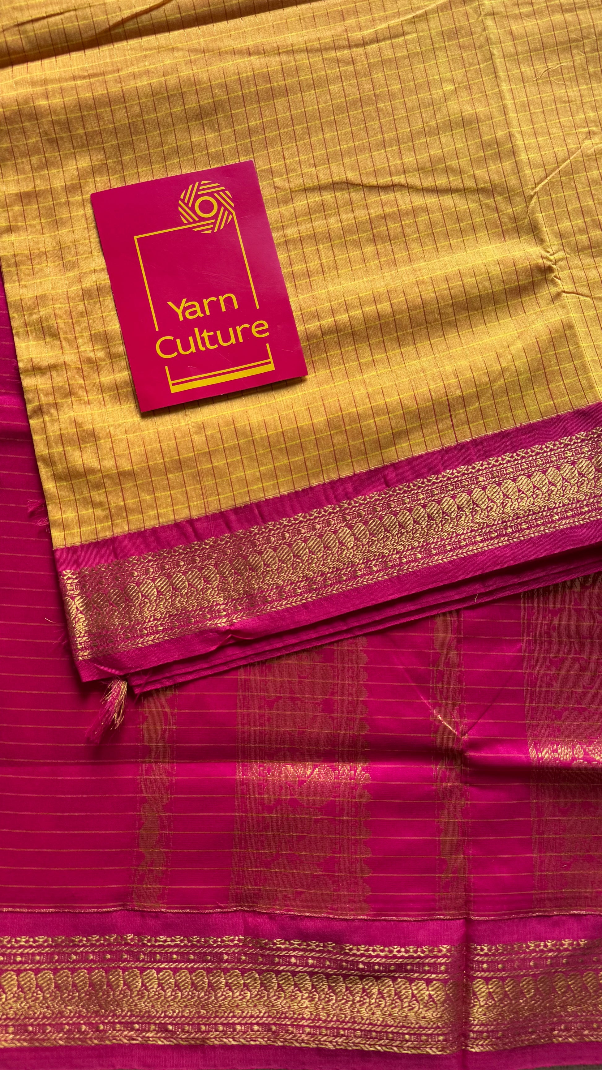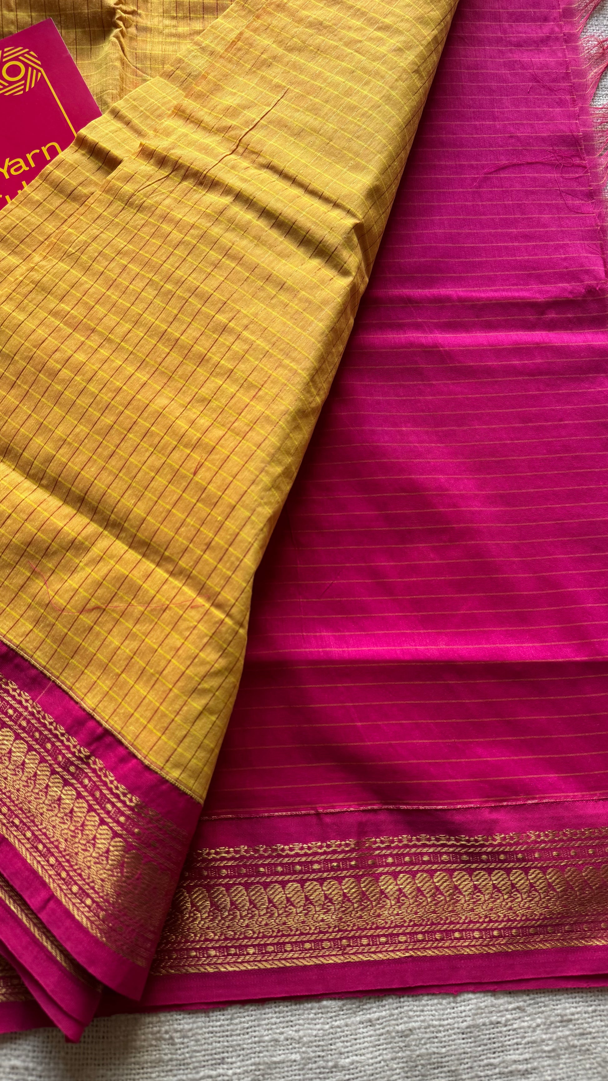 Yellow with hot pink, checks - cotton silk - YCCOTNOCKC44